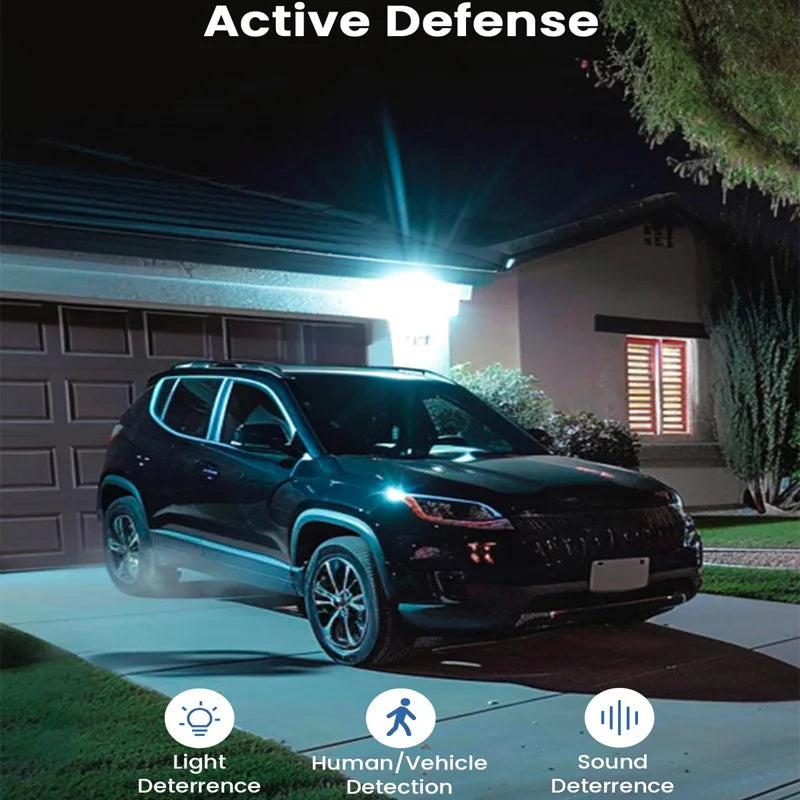 Capture every detail with 2K QHD resolution, offering clearer and more detailed footage than standard 1080p cameras. Integrated dual floodlights provide color night vision up to 33ft, ensuring your property is visible and secure even in low-light conditions.