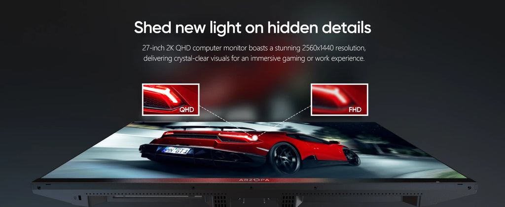 The ARZOPA 27" monitor features a high-resolution 2560 × 1440 (2K QHD) display, delivering crisp, detailed visuals. Whether gaming, designing, or working, every detail appears sharp and precise, creating an immersive and professional viewing experience.