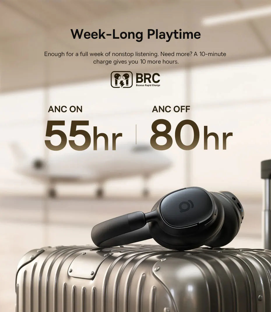Up to 80 hours of playback with ANC off (55 hours with ANC on), plus quick-charge functionality—10 minutes charging gives 10 hours of playtime. Perfect for week-long trips or extended gaming sessions.
