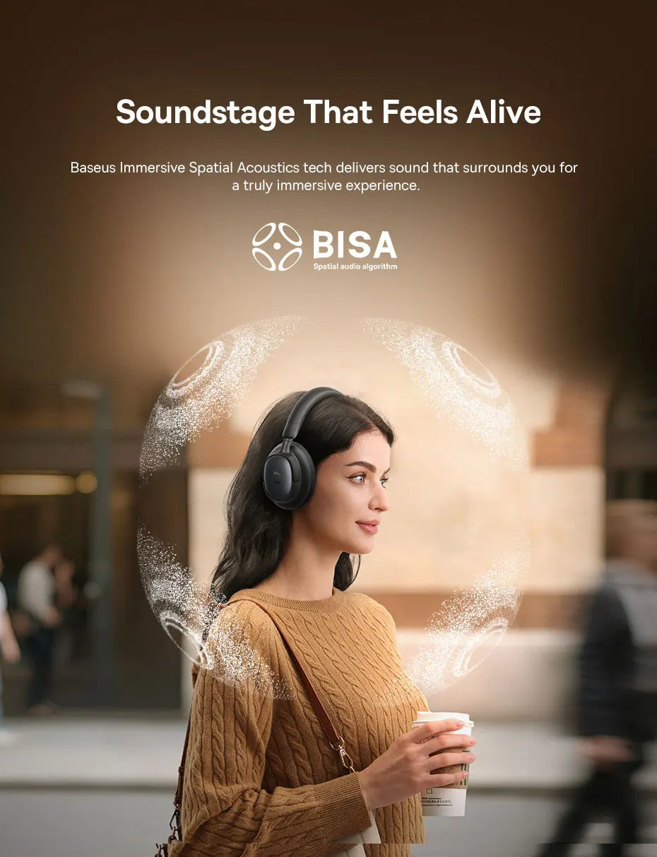 Baseus’ soundstage technology creates a 3D audio experience, giving the sensation of sound coming from all directions for more lifelike, cinematic listening.
