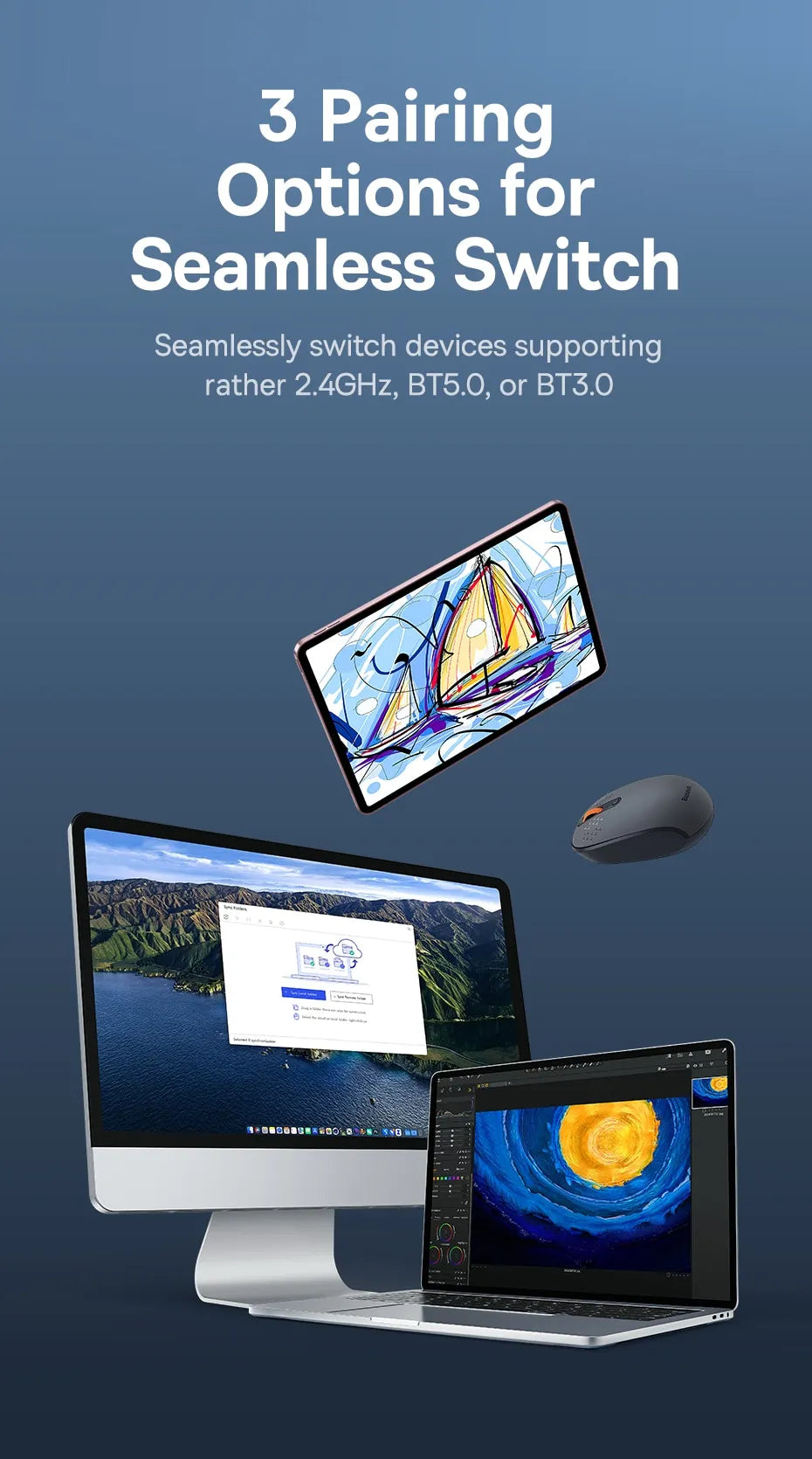 The BASEUS F01B Bluetooth & Wireless Optical Mouse combines precision, comfort, and convenience, making it an essential tool for enhancing your productivity.