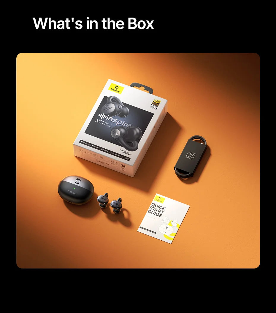 Elevate your audio experience with the BASEUS Inspire XC1 Open-Ear Bluetooth Earbuds, designed for those who demand high-fidelity sound, comfort, and all-day versatility. Featuring Bose-tuned audio, a hybrid 2-way sound engine, and LDAC Hi-Res audio codec, these clip-on open-ear earbuds deliver immersive, crystal-clear soundwithout isolating you from your surroundings. Perfect for sports, commuting, office work, or outdoor activities, the Inspire XC1 keeps you connected with 4-mic clear calls, long-lasting battery life, and smart app control.