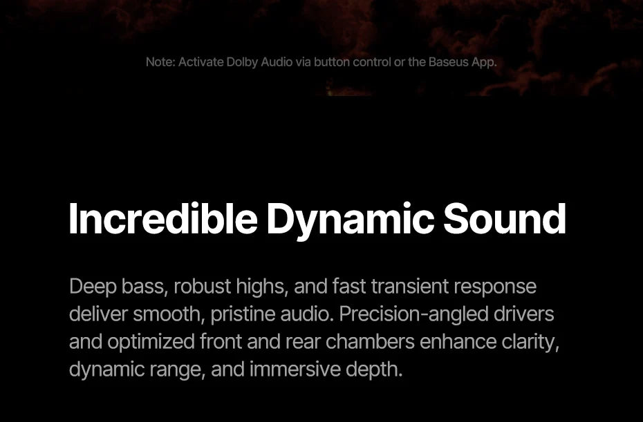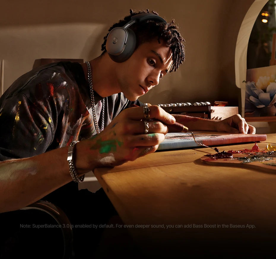 Engineered with angled drivers and optimized acoustic chambers, these headphones provide powerful deep bass and a balanced sound profile. Use the SoundFit feature in the Baseus app to personalise your listening experience and create a truly immersive, tailored soundstage.