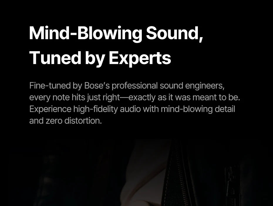 Enjoy exceptional high-fidelity audio tuned by Bose. The Dolby Spatial Audio provides 360° immersive sound, while Hi-Res certification and LDAC codec deliver three times the audio detail of standard Bluetooth headphones. Experience crystal-clear highs, rich mids, and deep, resonant bass in every track.