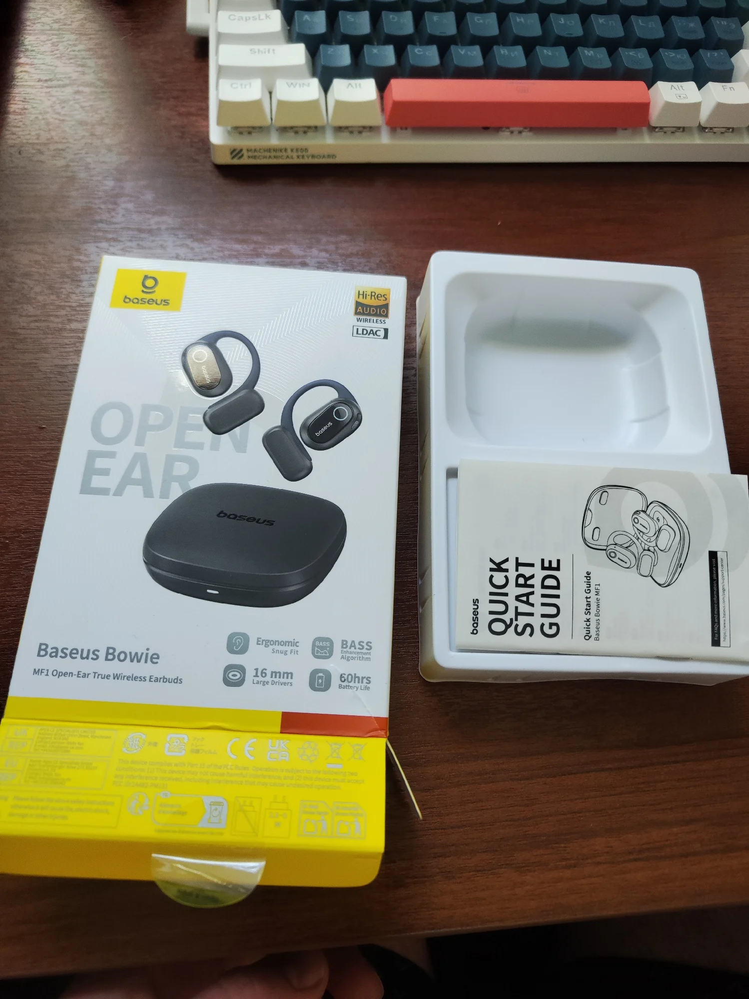 - Package Includes: 1 x BASEUS MF1 Open-Ear Headphones, 1 x Charging Case, 1 x Charging Cable, 1 x User Manual