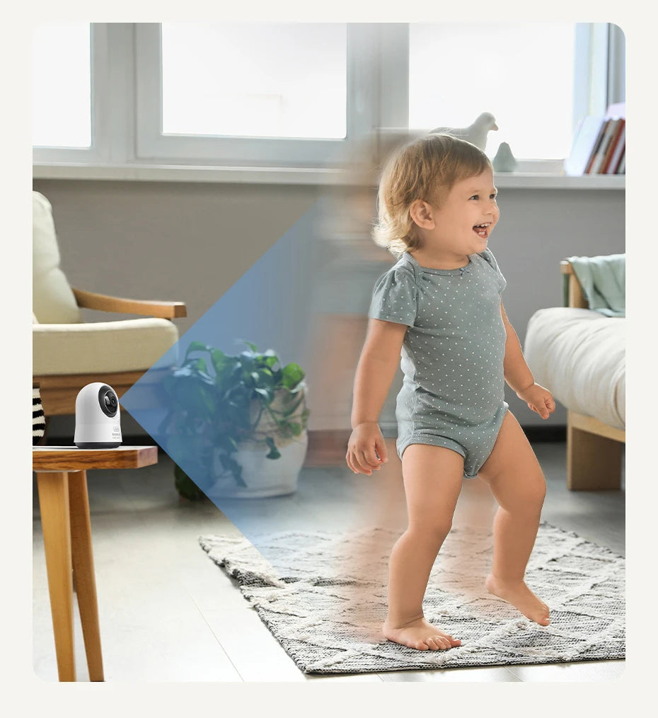 Monitor your entire space with smooth, precise movement. 360° horizontal rotation combined with 90° vertical tiltensures no blind spots, giving you comprehensive indoor surveillance.