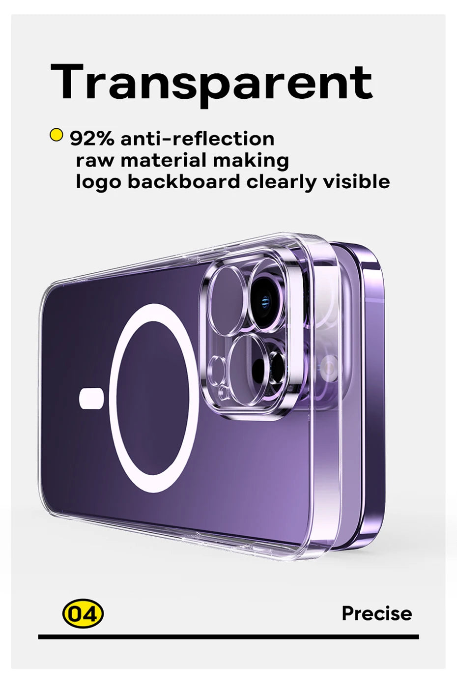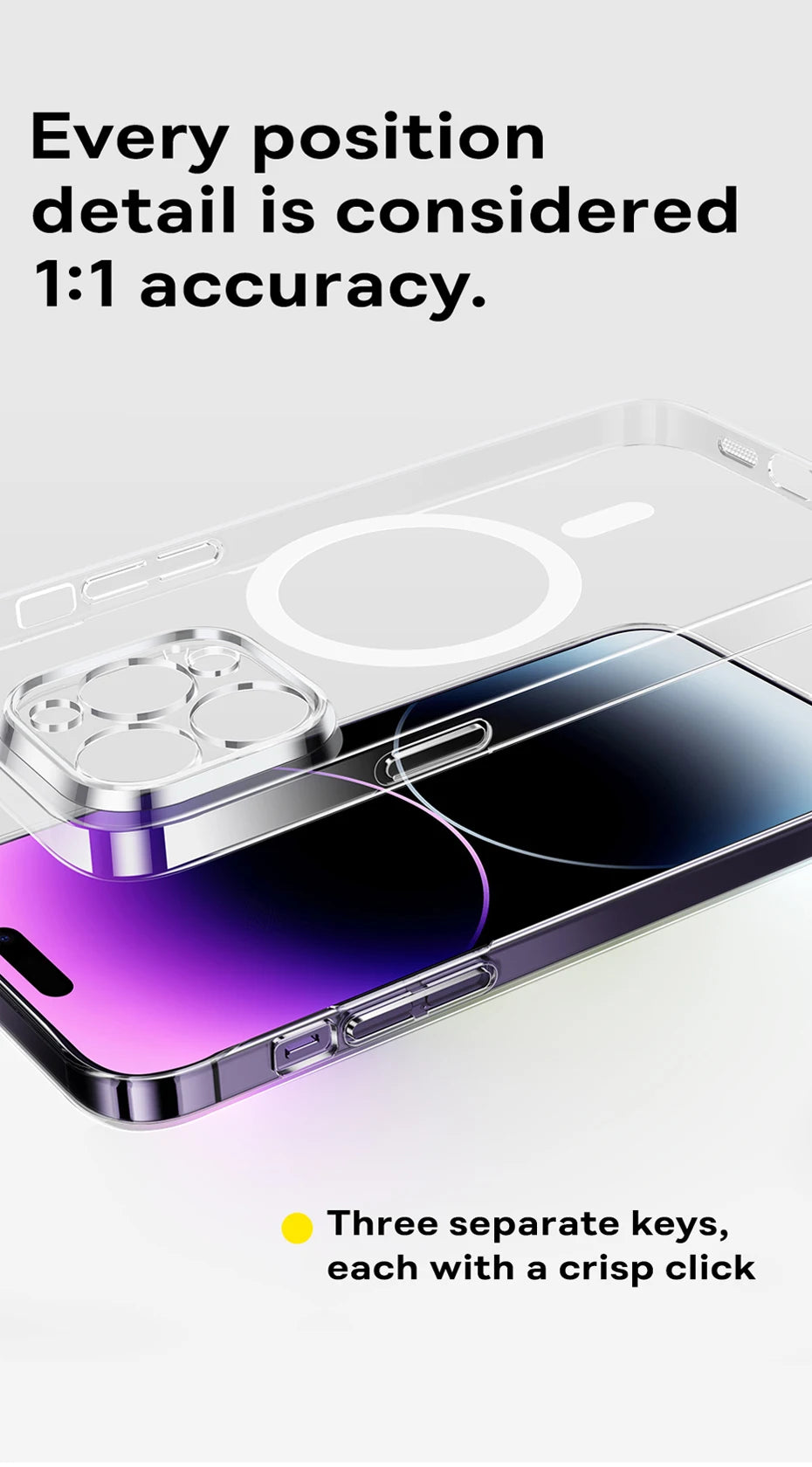 The transparent design maintains the sleek appearance of your iPhone, while the durable construction resists yellowing over time, keeping your case looking new. Its slim profile adds minimal bulk to your device, providing a comfortable grip and maintaining its original form.
