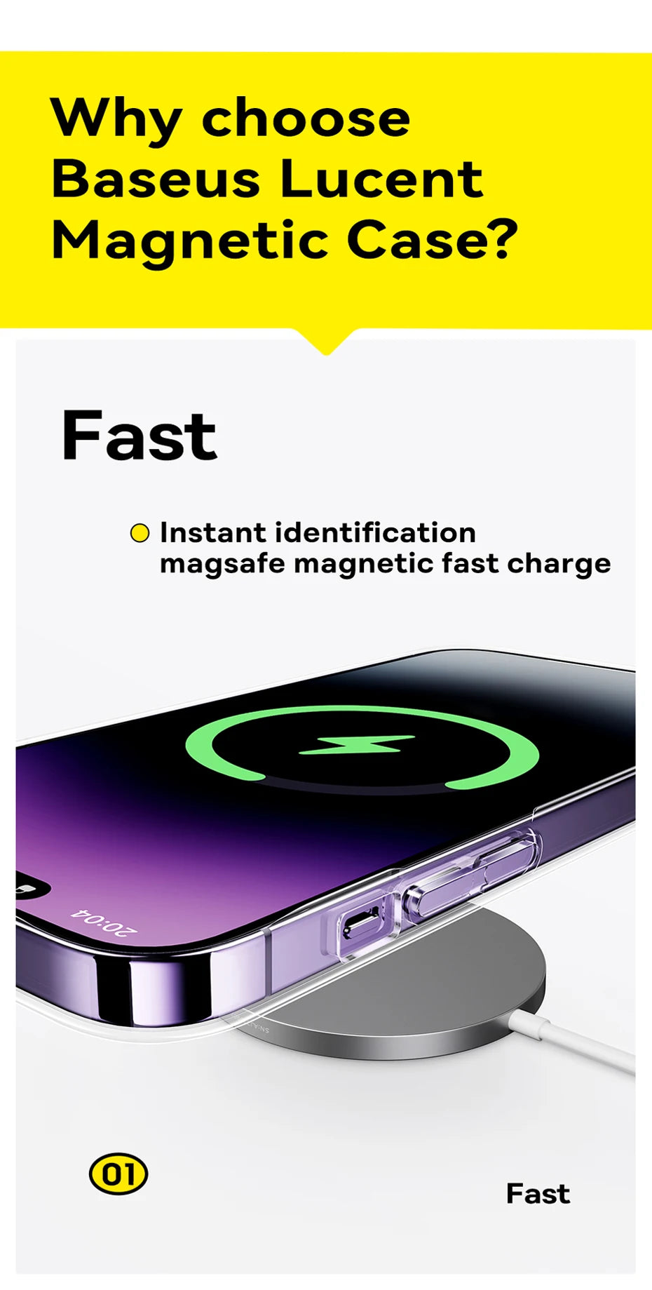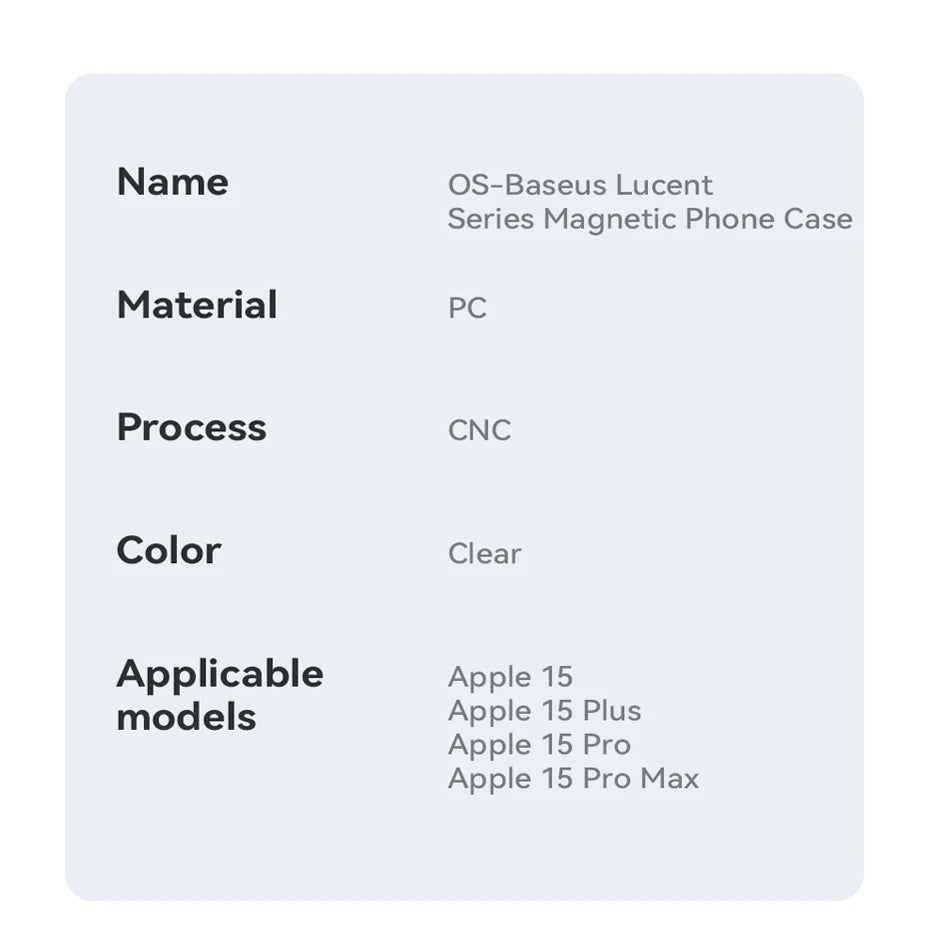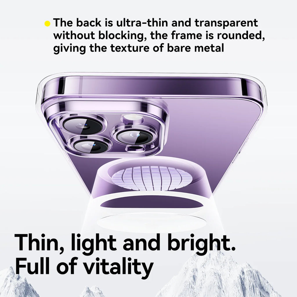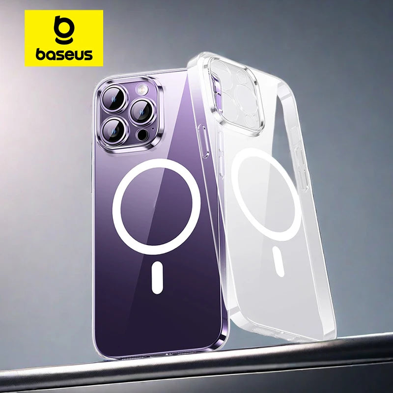 The BASEUS Transparent Magnetic Protective Phone Case for iPhone offers a perfect blend of clear protection and stylish design. Made from high-quality materials, this case provides robust defense against scratches, drops, and everyday wear while allowing the natural beauty of your iPhone to shine through.