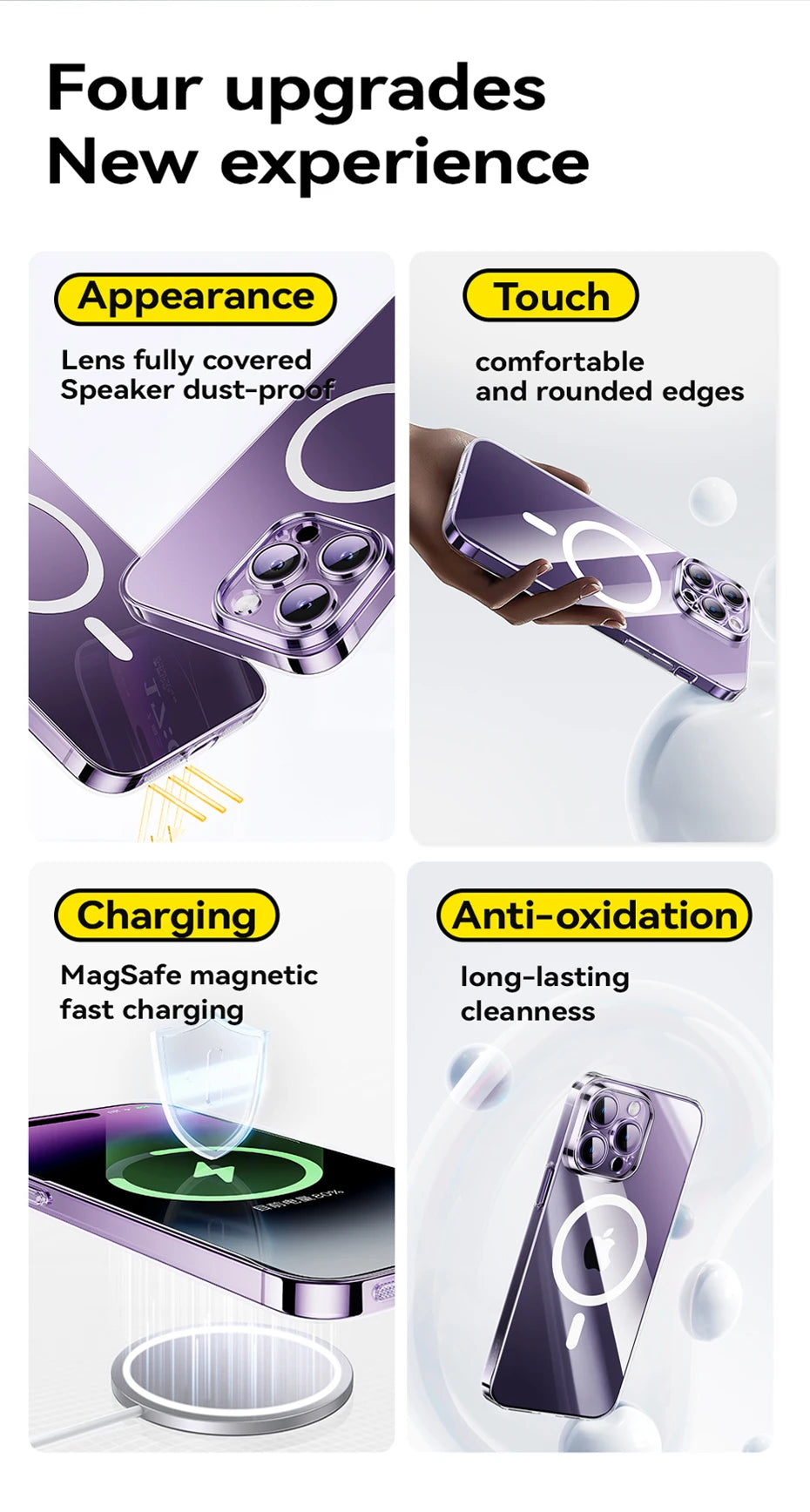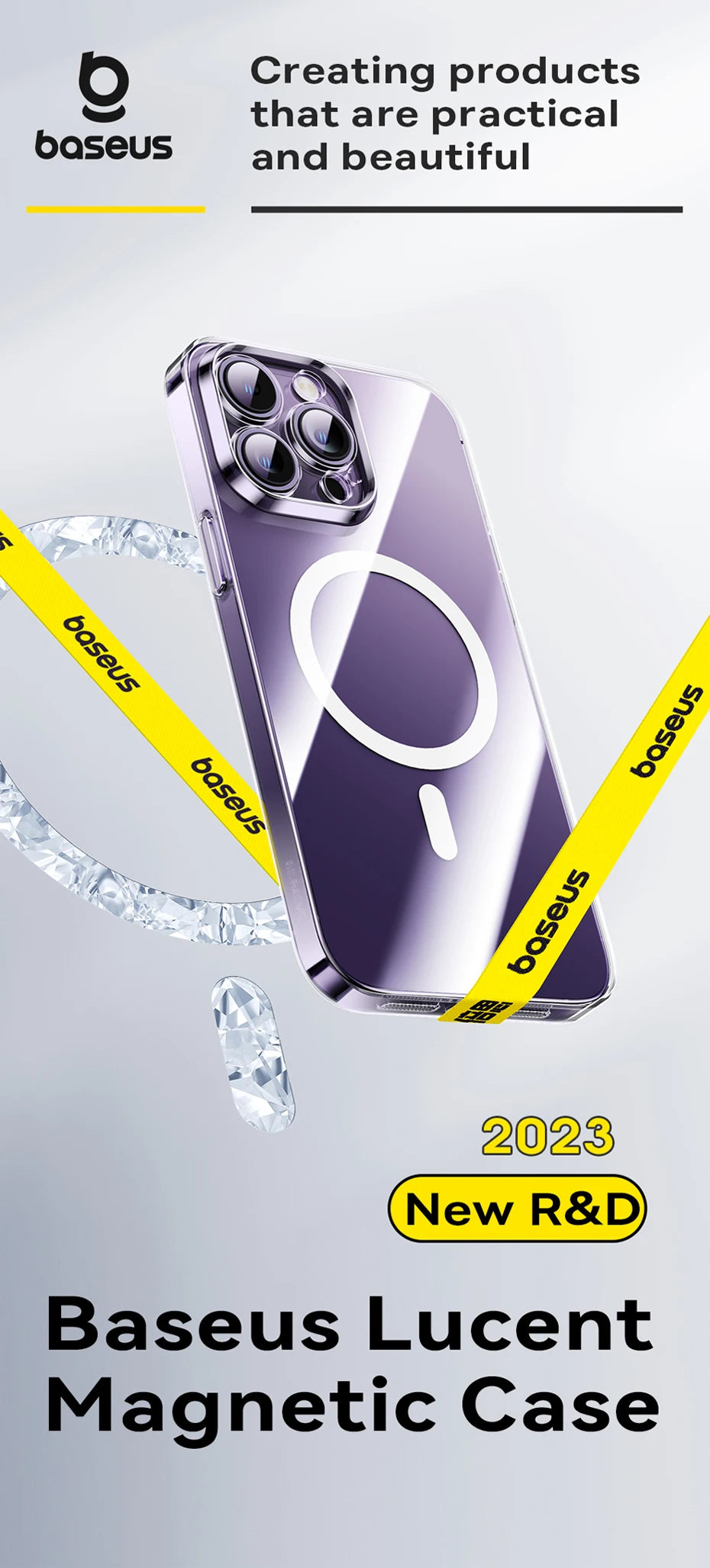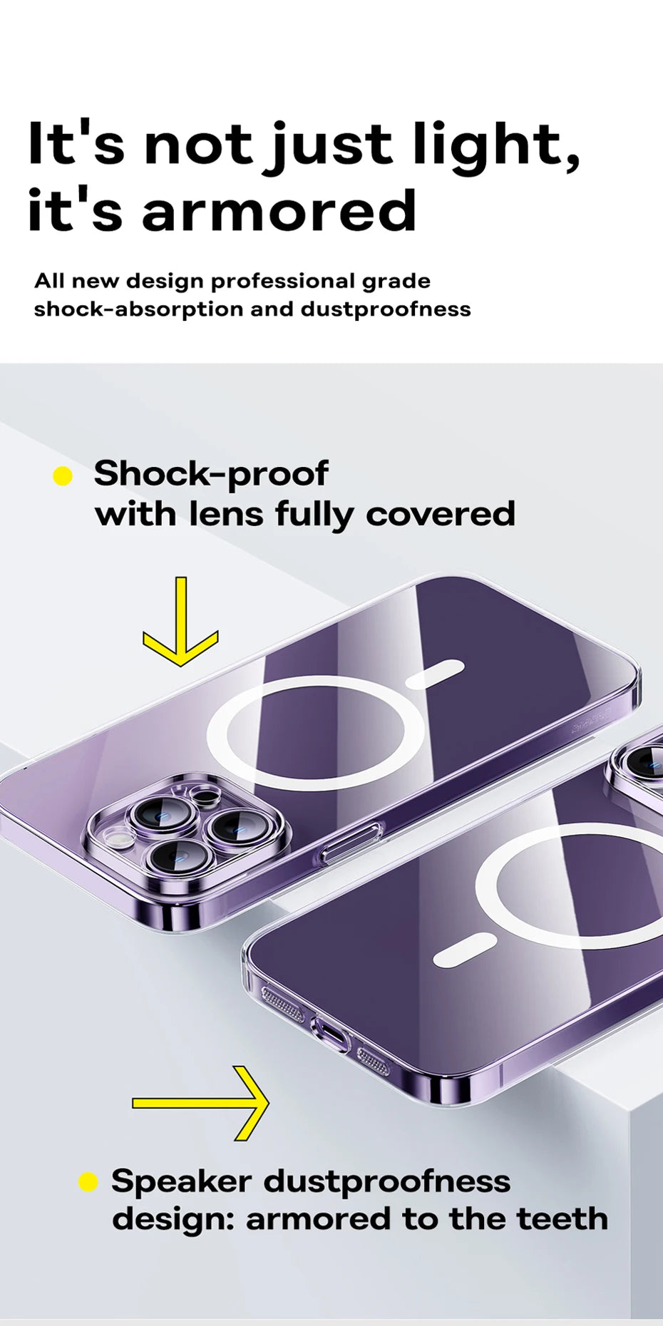 The BASEUS Transparent Magnetic Protective Phone Case for iPhone offers a perfect blend of clear protection and stylish design. Made from high-quality materials, this case provides robust defense against scratches, drops, and everyday wear while allowing the natural beauty of your iPhone to shine through.