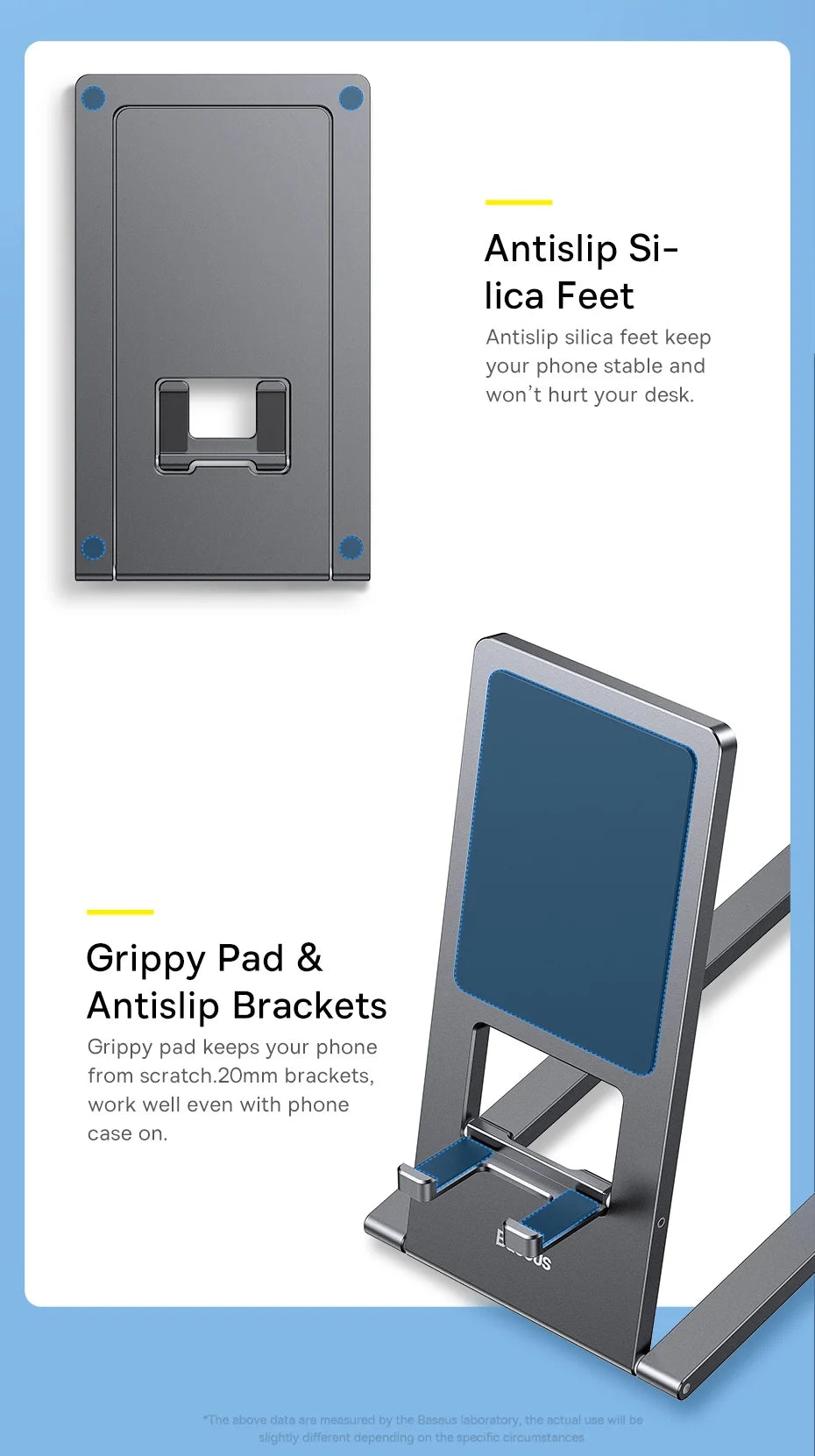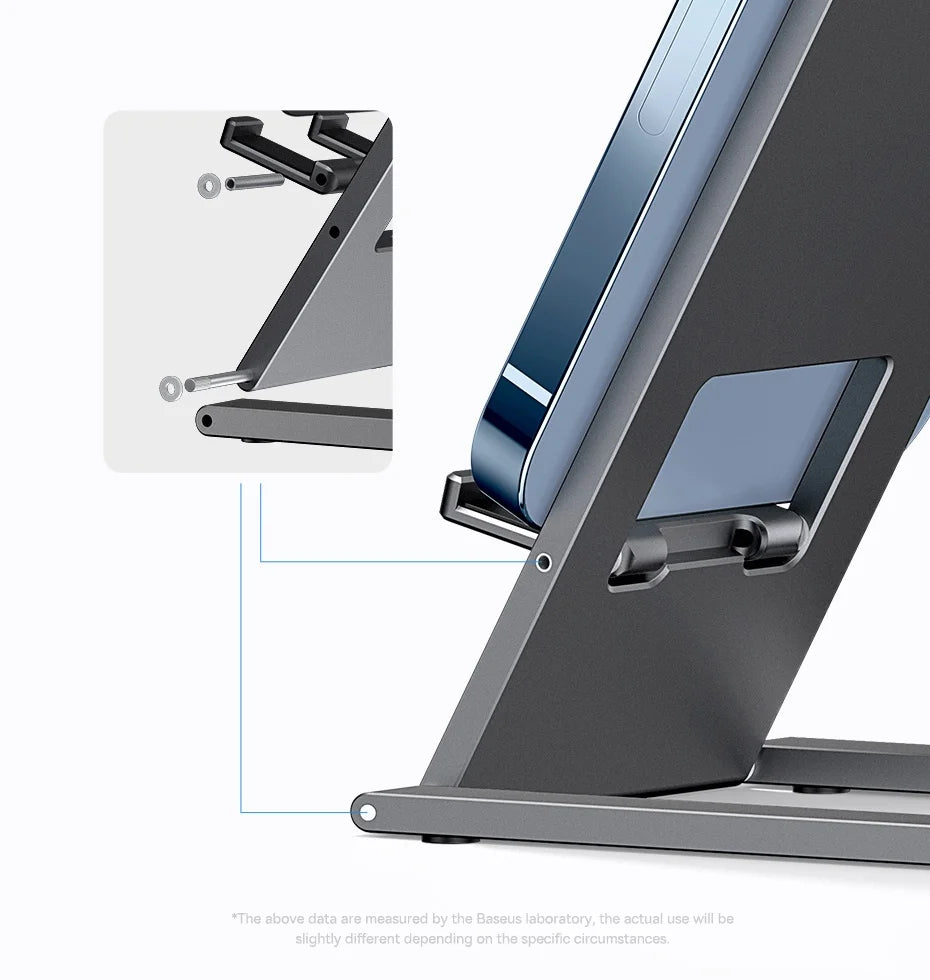 The stand features a sturdy and durable construction, providing stable support for your device while maintaining a sleek and modern design. Its anti-slip base ensures that your device remains securely in place, preventing accidental slips or tipping.
