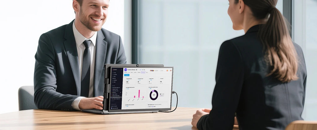 Crafted for portability, the DOPESPLAY monitor fits easily into your laptop bag or backpack. Its foldable, durable design makes it ideal for travel, remote work, or hybrid setups.