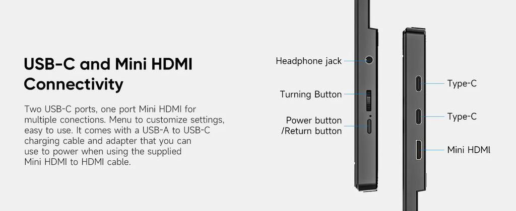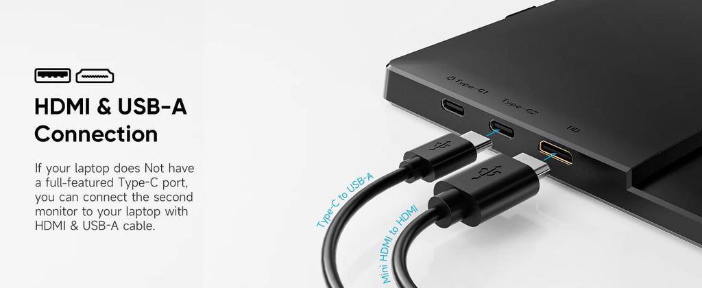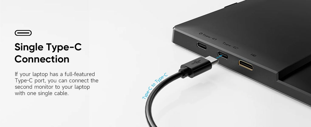Quick and simple to set up with USB-C — just plug it in, and it works immediately as a second screen. Most modern laptops support this feature without the need for drivers. Some devices without full USB-C functionality may require an additional USB-A to USB-C cable for power. - Wide Compatibility Across Devices