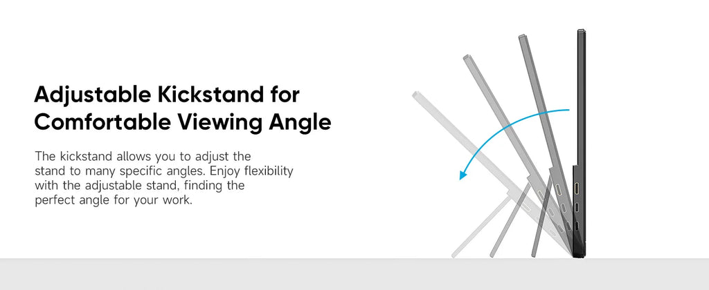 At just 1.4 lbs and 0.3 inches thick, this monitor is extremely portable, making it ideal for travel, remote work, and on-the-go productivity without adding bulk to your bag. - Flexible Kickstand for Custom Viewing Angles