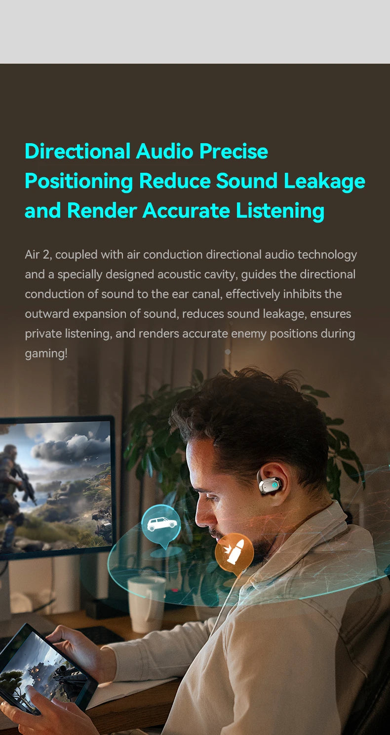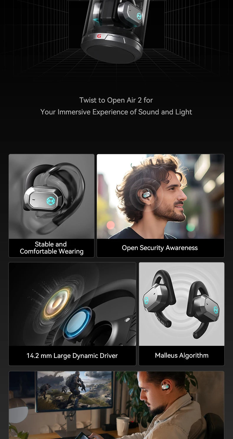 The EDIFIER Hecate Air 2 is designed for an immersive, comfortable, and private listening experience. Featuring an open-ear design, directional audio transmission, and low-latency gaming mode, these headphones provide high-quality sound without compromising environmental awareness or comfort.