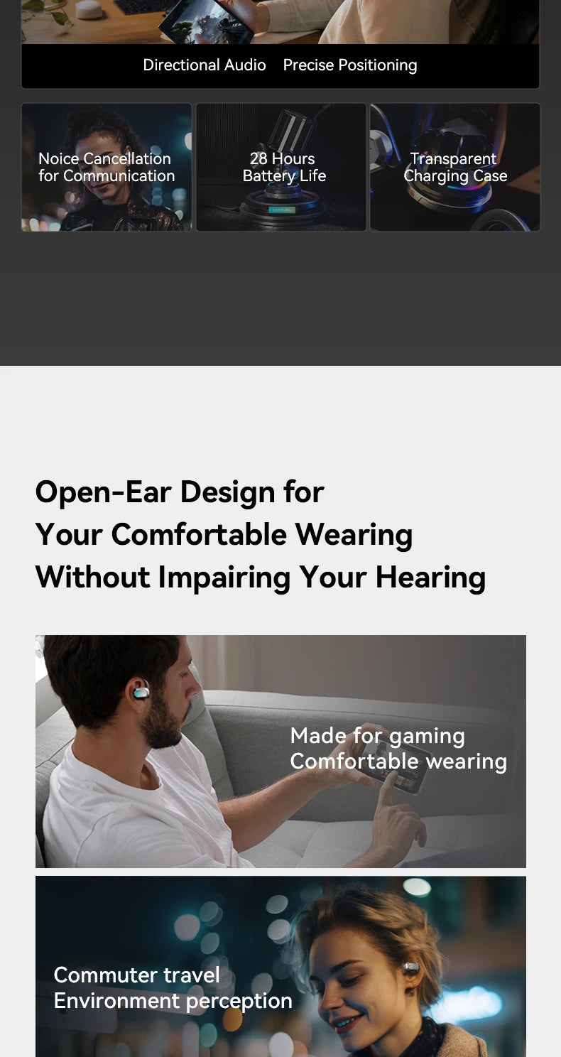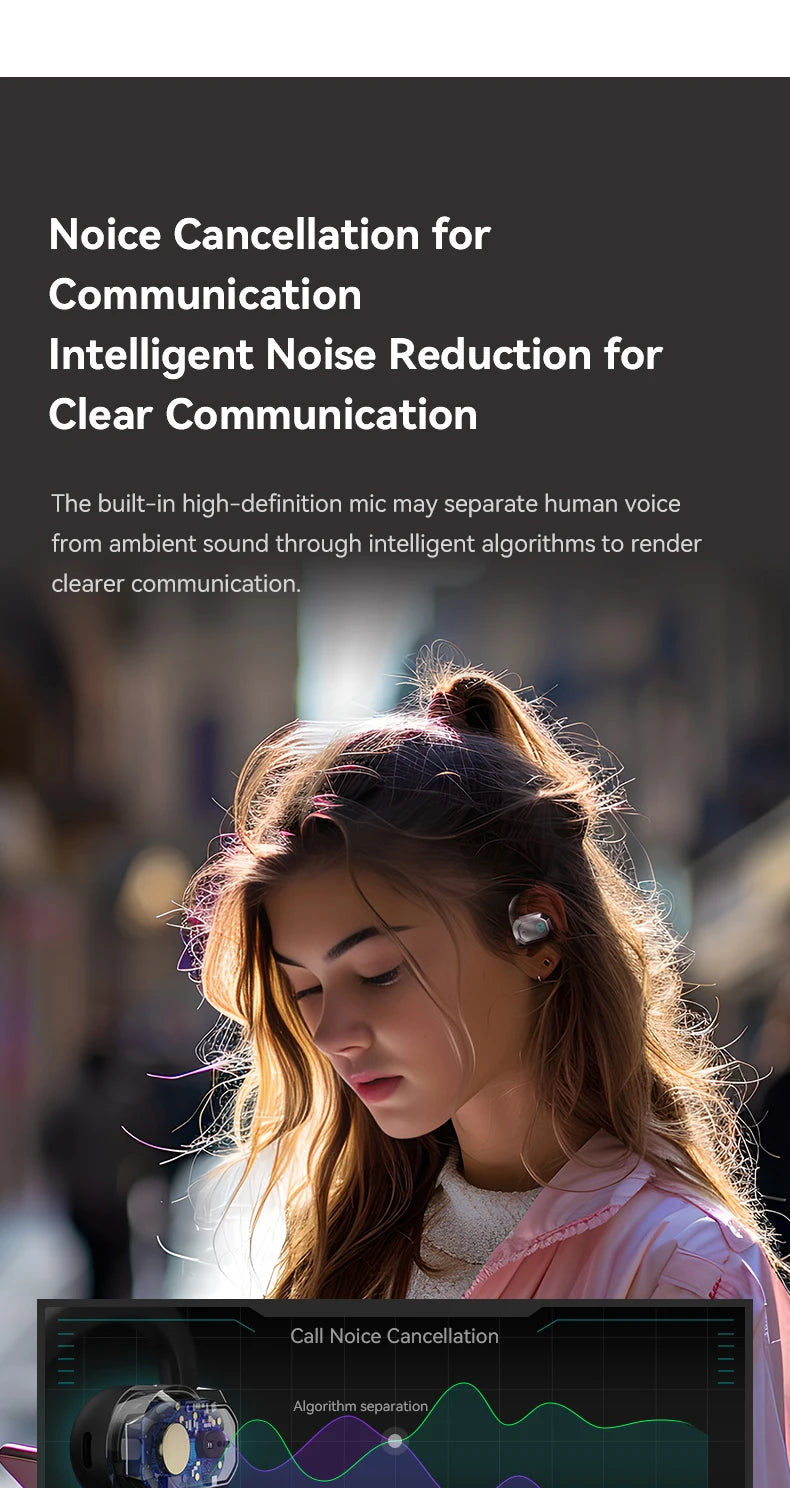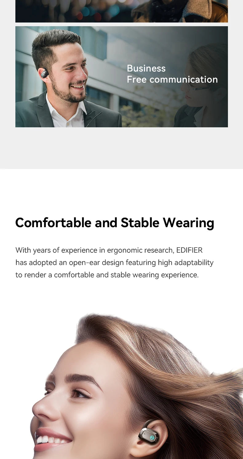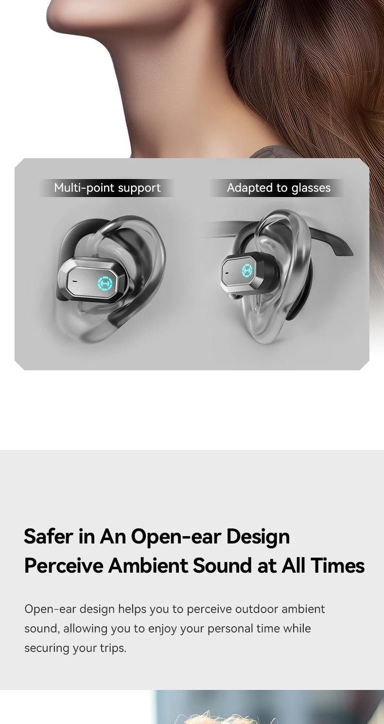- Comfortable Wearing – Open-ear, pressure-free design ensures a secure and comfortable fit while maintaining safety perception.