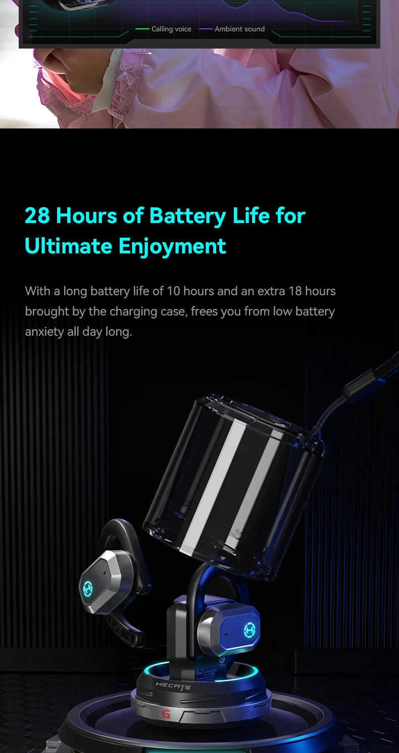 - 28-Hour Battery Life – Enjoy up to 10 hours of playback on a single charge, with an additional 18 hours from the charging case.