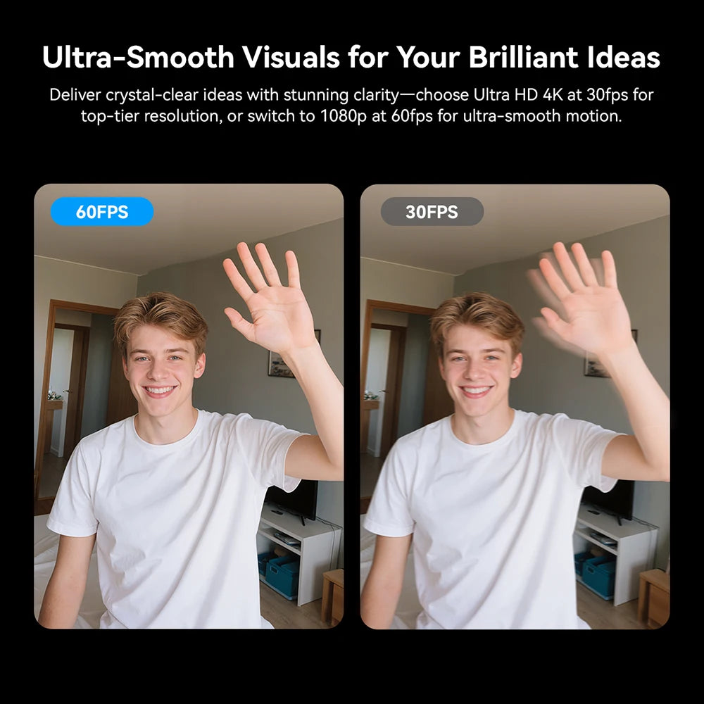 Both lenses deliver ultra-HD 4K resolution at 30fps, producing vivid colors, sharp details, and vibrant imagery. Switch to 1080p at 60fps for ultra-smooth motion, ideal for fast-paced streams, gaming, or live demonstrations.
