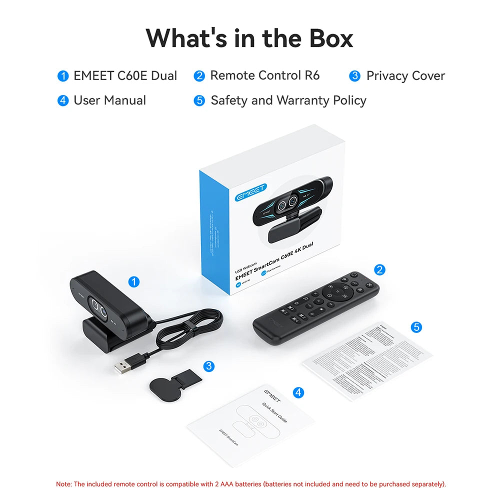 Elevate your streaming, video conferencing, and content creation with the EMEET C60E 4K Dual Webcam. Featuring dual 4K cameras, RGB lighting, fast autofocus, hybrid zoom, and dual noise-reduction microphones, this versatile webcam ensures you are always seen and heard with crystal-clear precision. Perfect for streamers, educators, and online professionals seeking high-quality visuals and smooth performance.