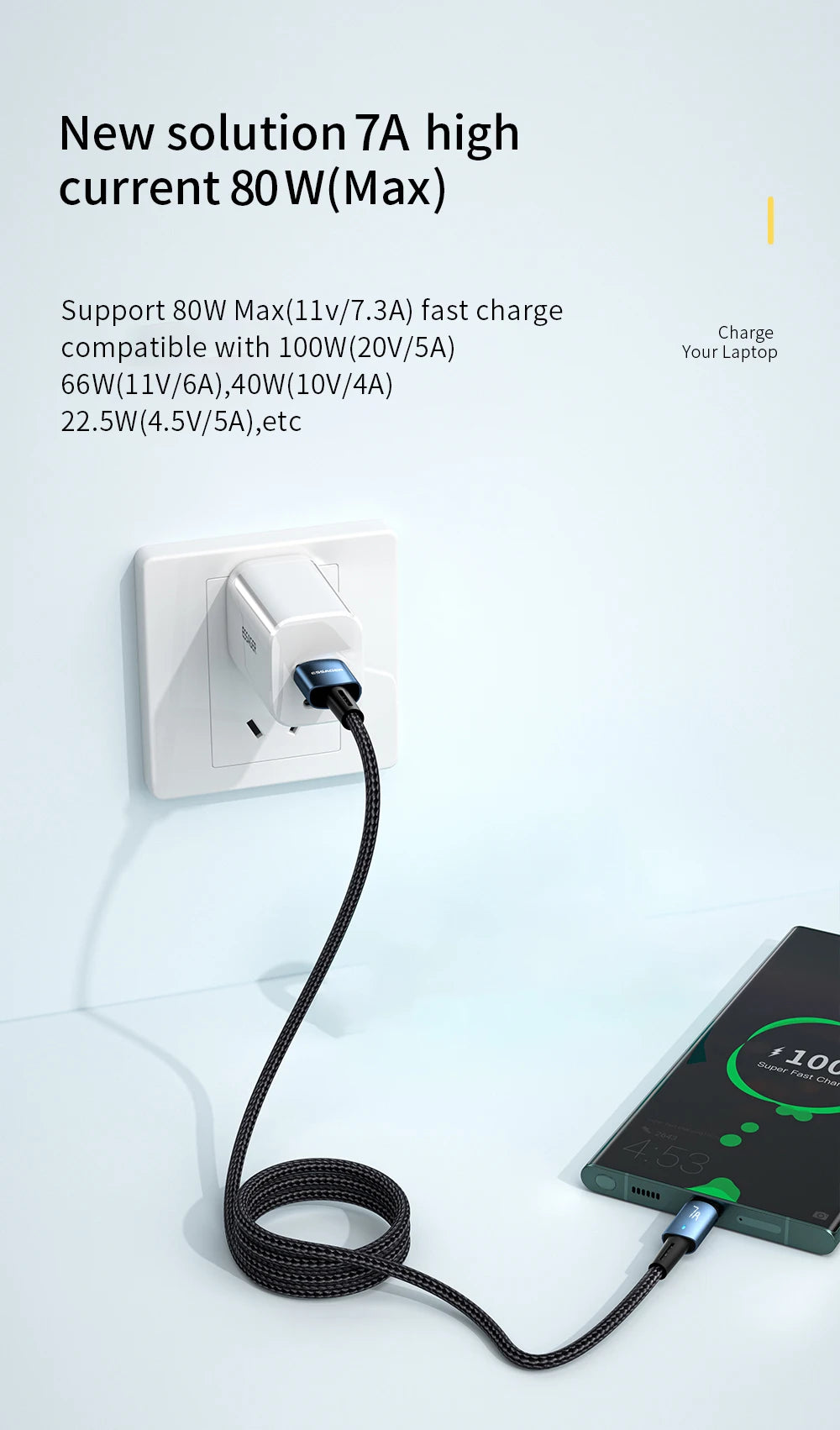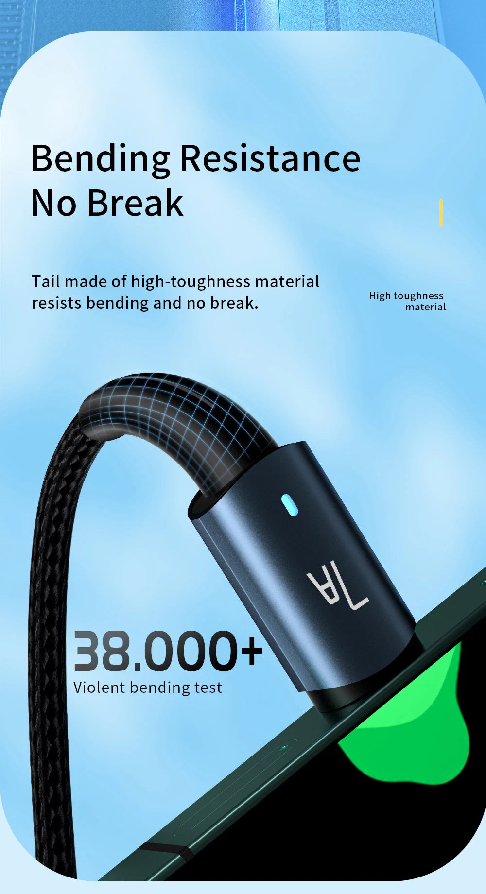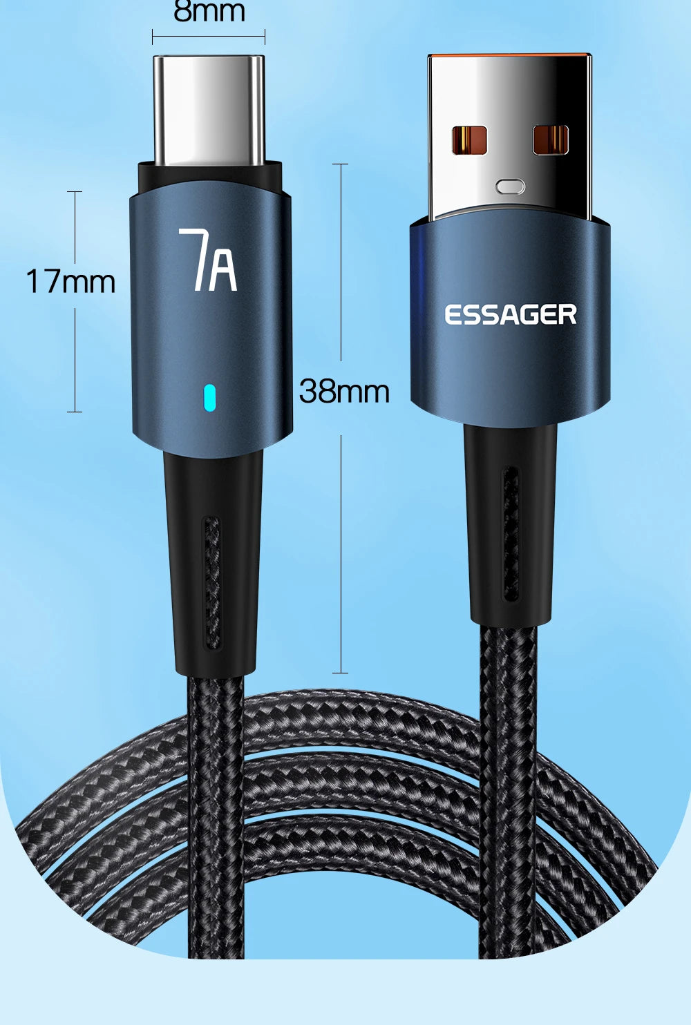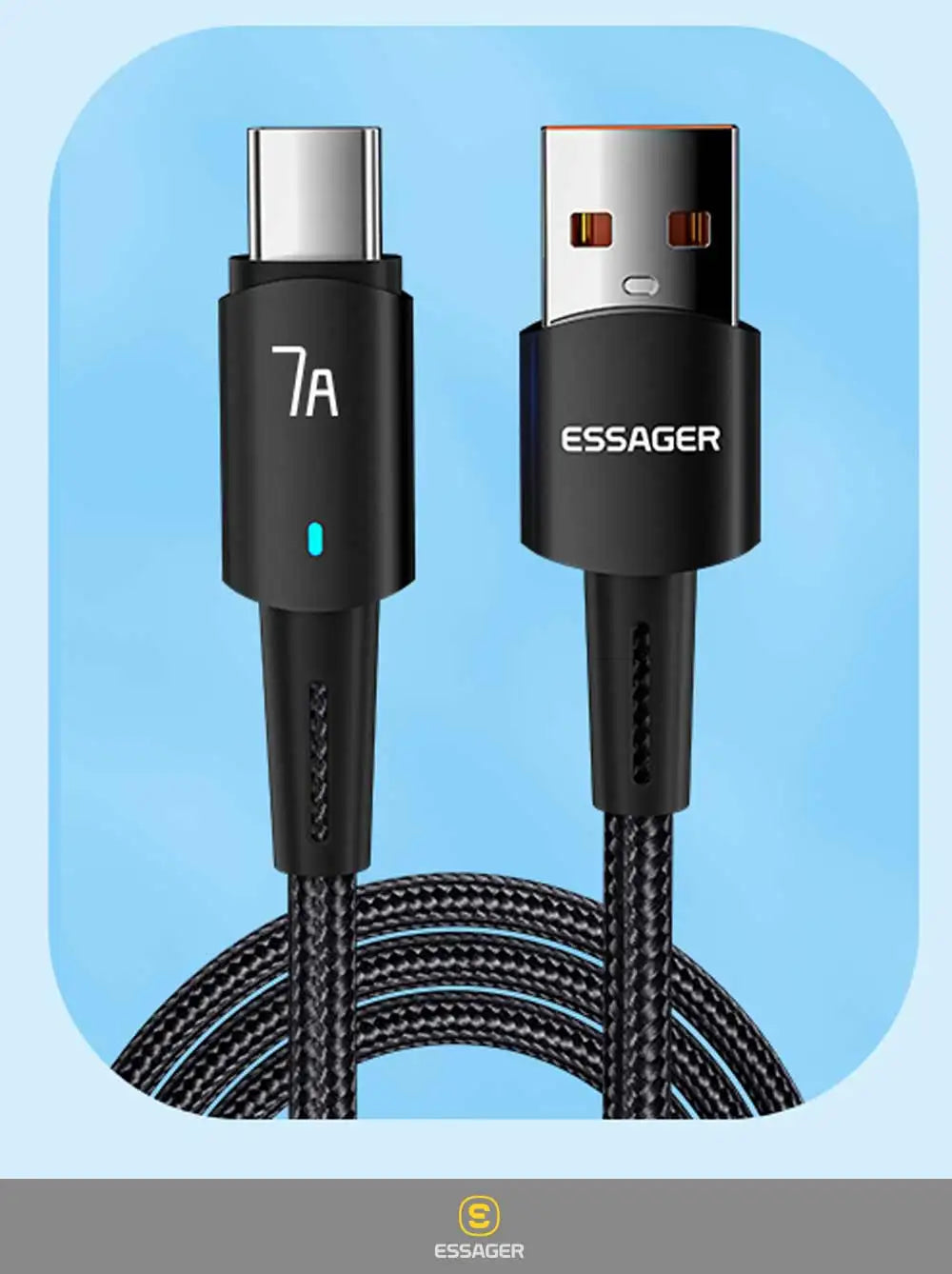 The ESSAGER 7A USB to Type-C Cable is built with high-quality materials, ensuring durability and resistance to wear and tear. The tangle-free design makes it easy to store and carry, while the reinforced connectors provide added strength and longevity.