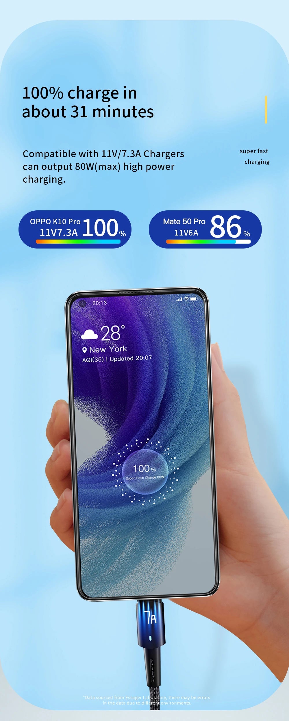 Safety features such as overcharge protection, temperature control, and short-circuit prevention are integrated into the cable, ensuring your devices are charged safely. The ESSAGER 7A USB to Type-C Charging and Data Cable offers a dependable, efficient, and durable solution for all your charging and data transfer needs, whether at home, in the office, or on the go.