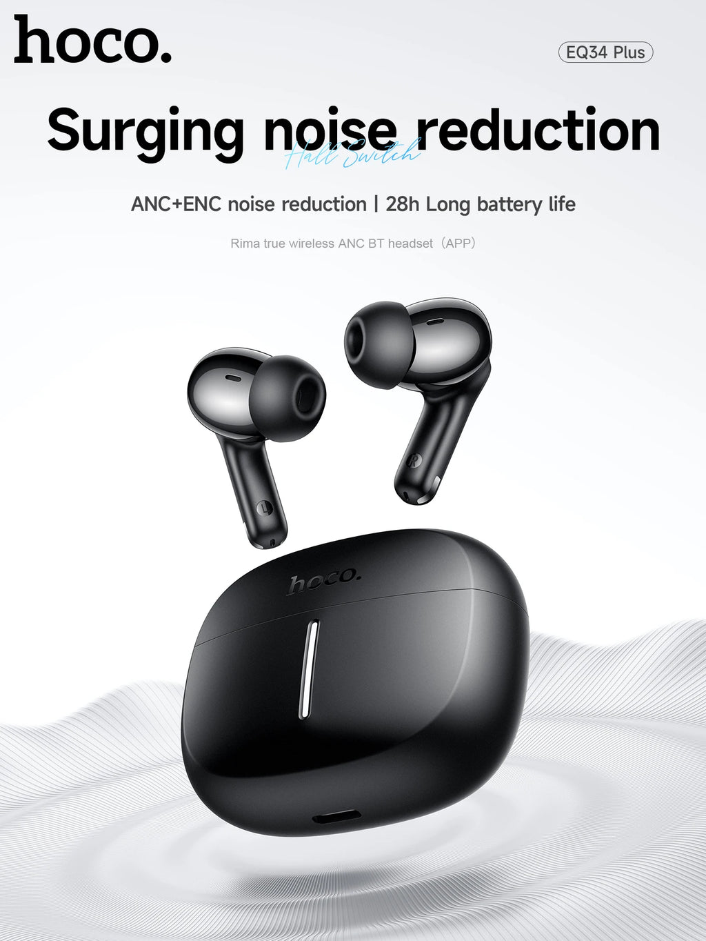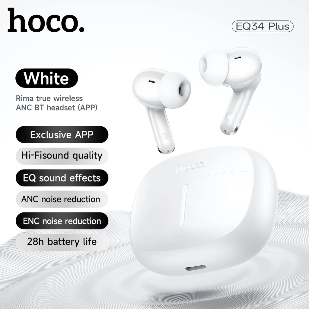 The HOCO EQ34 Plus earbuds combine advanced ANC+ENC noise cancellation, Bluetooth 5.4 connectivity, and ergonomic in-ear design for an immersive audio experience. Featuring app control, sealed silicone ear tips, and a compact charging case, these earbuds are perfect for sports, commuting, or daily use. With up to 7 hours of playtime per charge (6 hours with ANC on) and a total of up to 28 hours with the charging case, the EQ34 Plus keeps your music, calls, and entertainment uninterrupted.