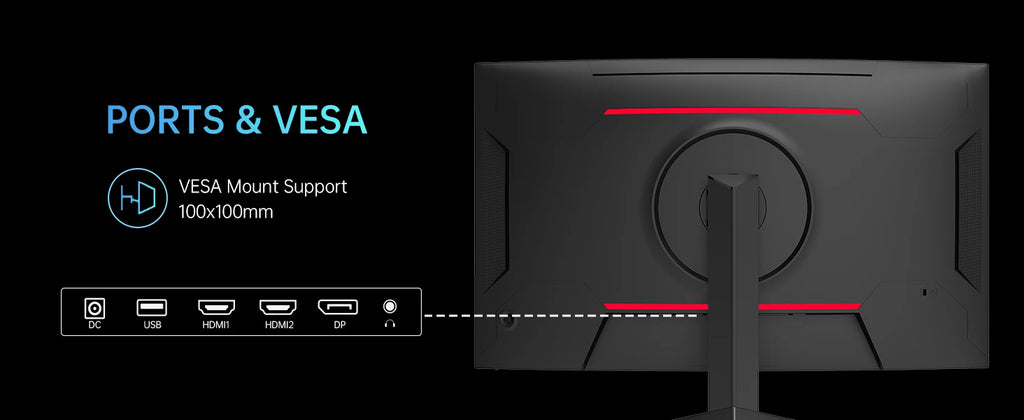 ✔ Wide connectivity with HDMI, DP, and VESA mounting