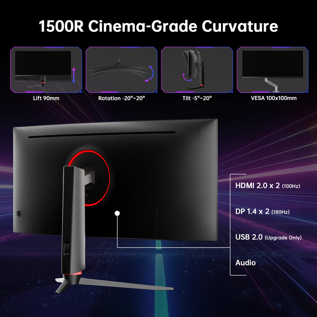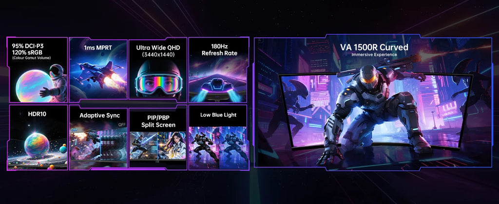 - 1500R curvature and ultrawide format reduce eye fatigue and increase immersion
