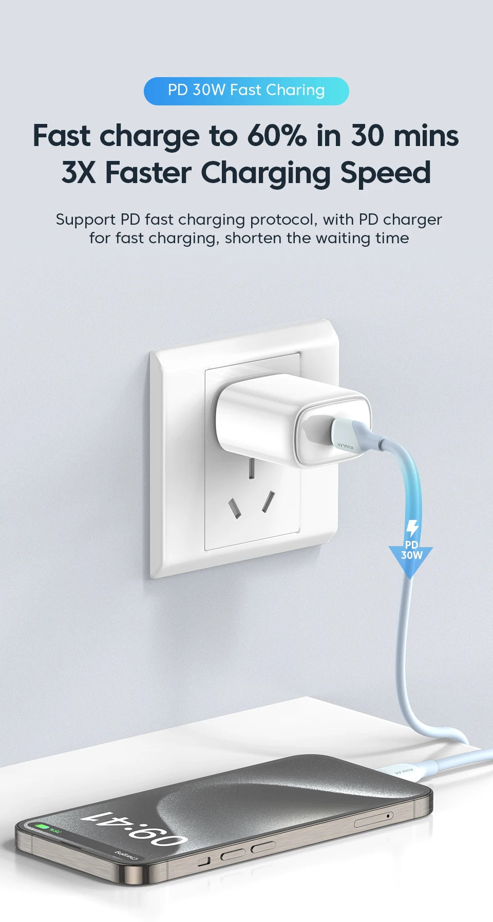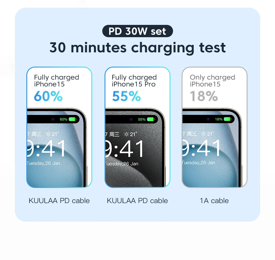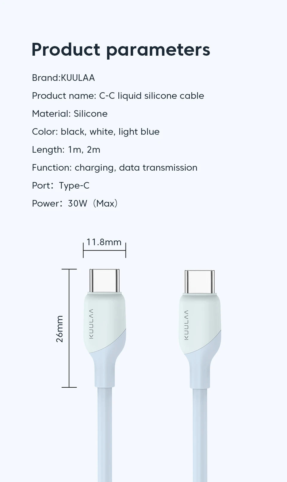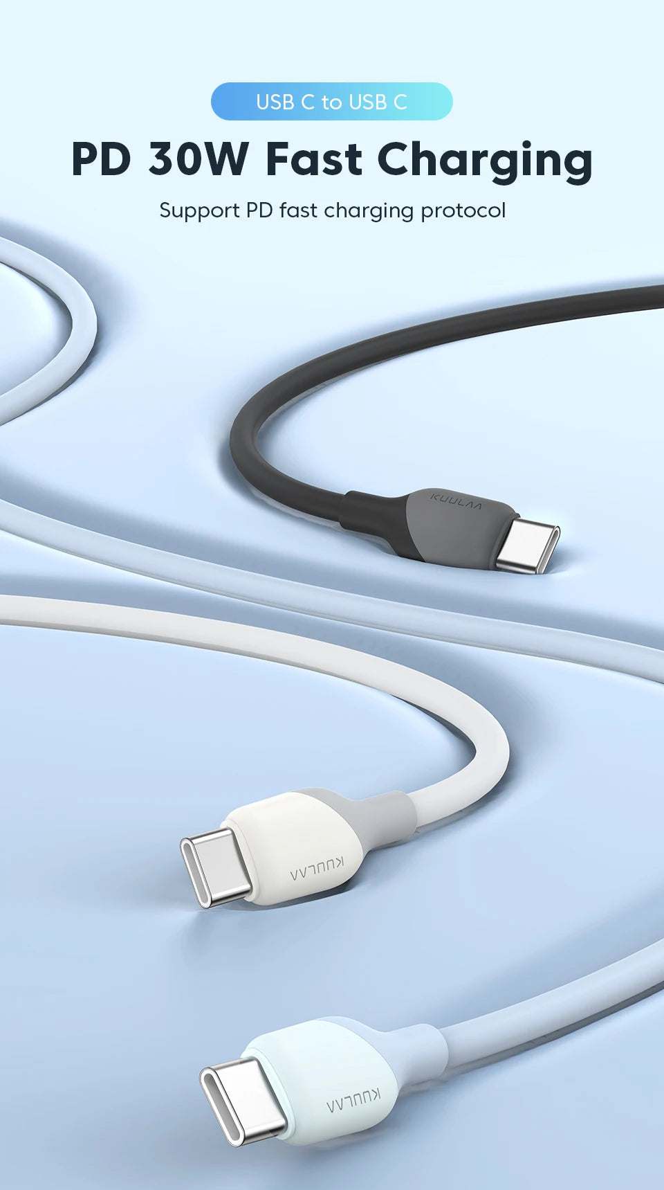 Ideal for use with a range of Type-C devices, including smartphones, tablets, and laptops, the KUULAA 30W Type-C to Type-C Cable combines speed and reliability, making it an essential accessory for anyone needing efficient charging and data solutions.