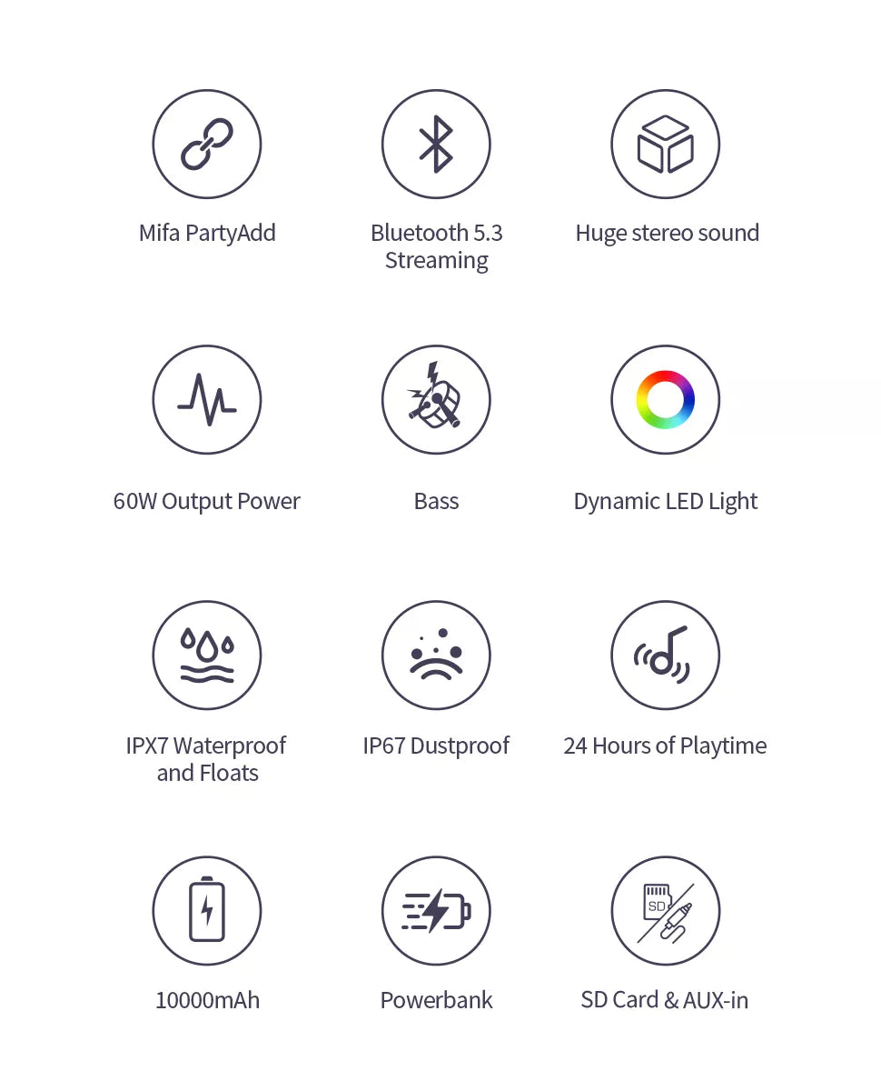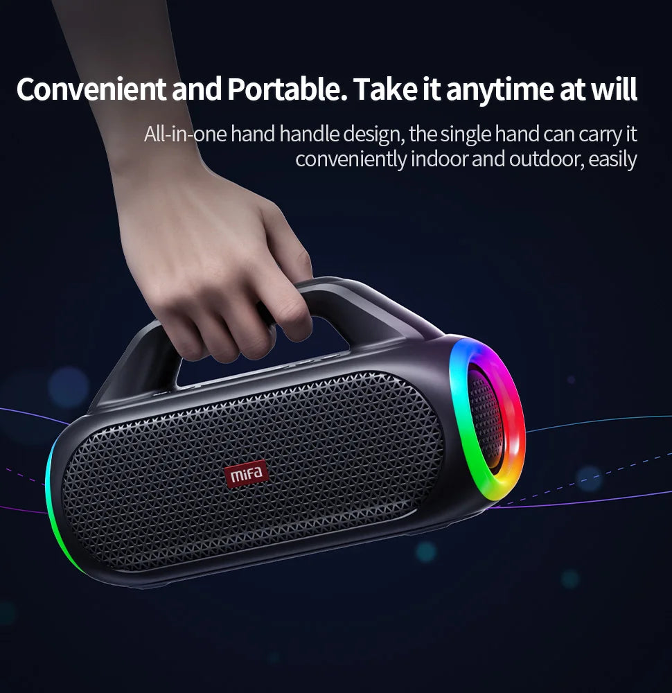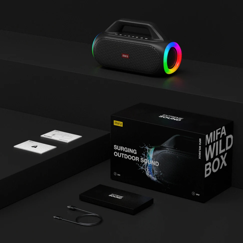 The MIFA WildBox Portable Bluetooth Speaker is your ultimate outdoor companion, designed to deliver powerful and clear sound no matter where you are. With its robust audio performance, the WildBox provides deep bass and crisp highs, making it perfect for outdoor parties, camping, or any adventure. The speaker's durable, weather-resistant design ensures it can handle the elements, while the long battery life keeps the music playing all day. Bluetooth connectivity allows for easy pairing with your devices, and its portable size makes it easy to carry along on any trip.