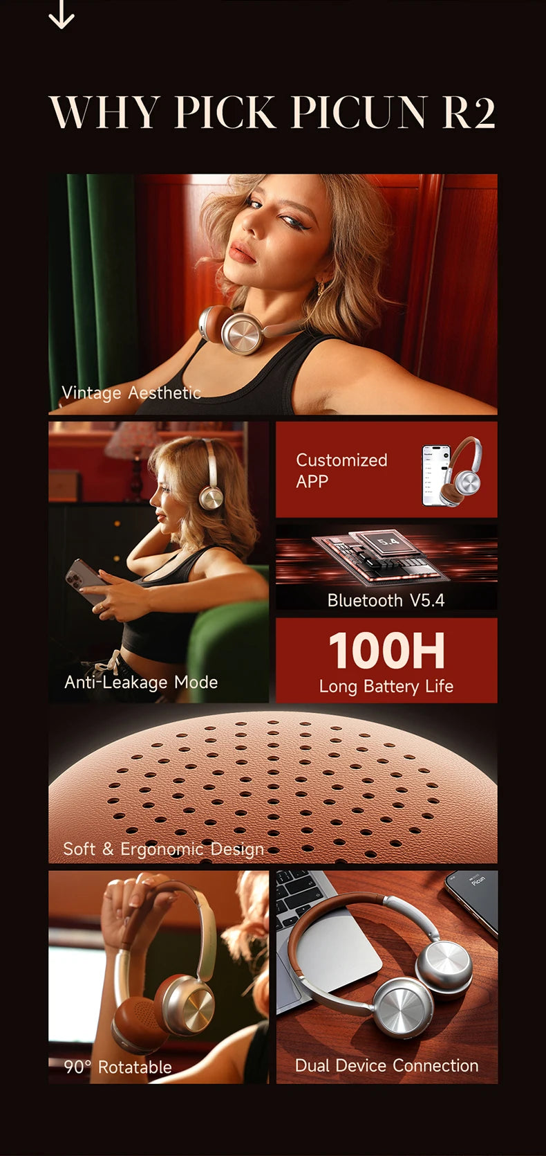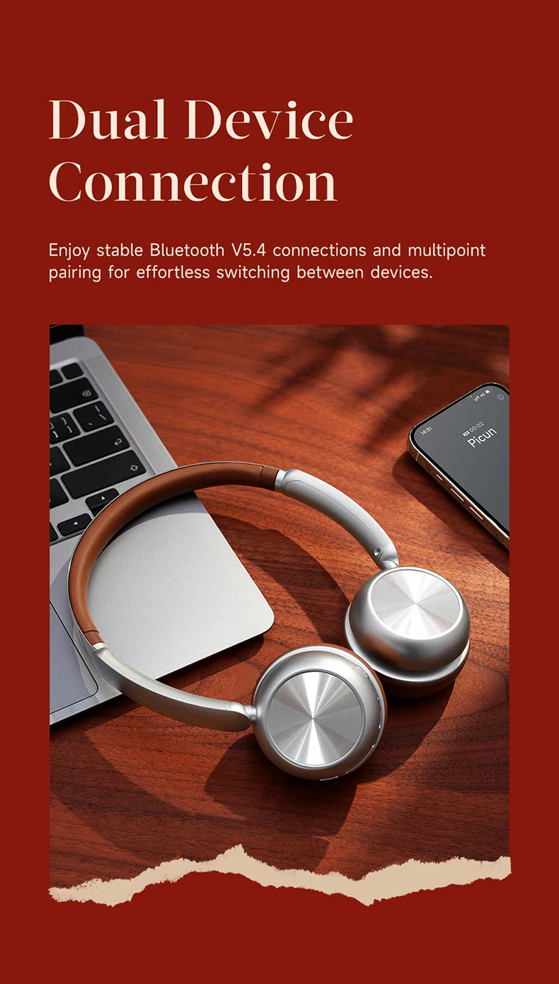 The PICUN R2 ENC Bluetooth Wireless Headphones deliver a premium audio experience with cutting-edge technology and user-friendly features. Designed for both style and function, these headphones provide immersive spatial audio, making every note come alive. Equipped with Bluetooth 5.4, they ensure a stable and fast wireless connection, while the dual-device feature allows you to effortlessly switch between work and play. With ultra-low latency for seamless streaming and gaming, and a massive 100-hour battery life, the R2 headphones are built for extended use without interruptions.