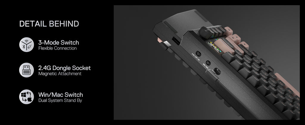 - Smart Info-Island Screen – A 1.41-inch TFT display provides live keyboard information such as connection mode, battery level, and typing status, while also allowing fun GIF customisation to match your mood.