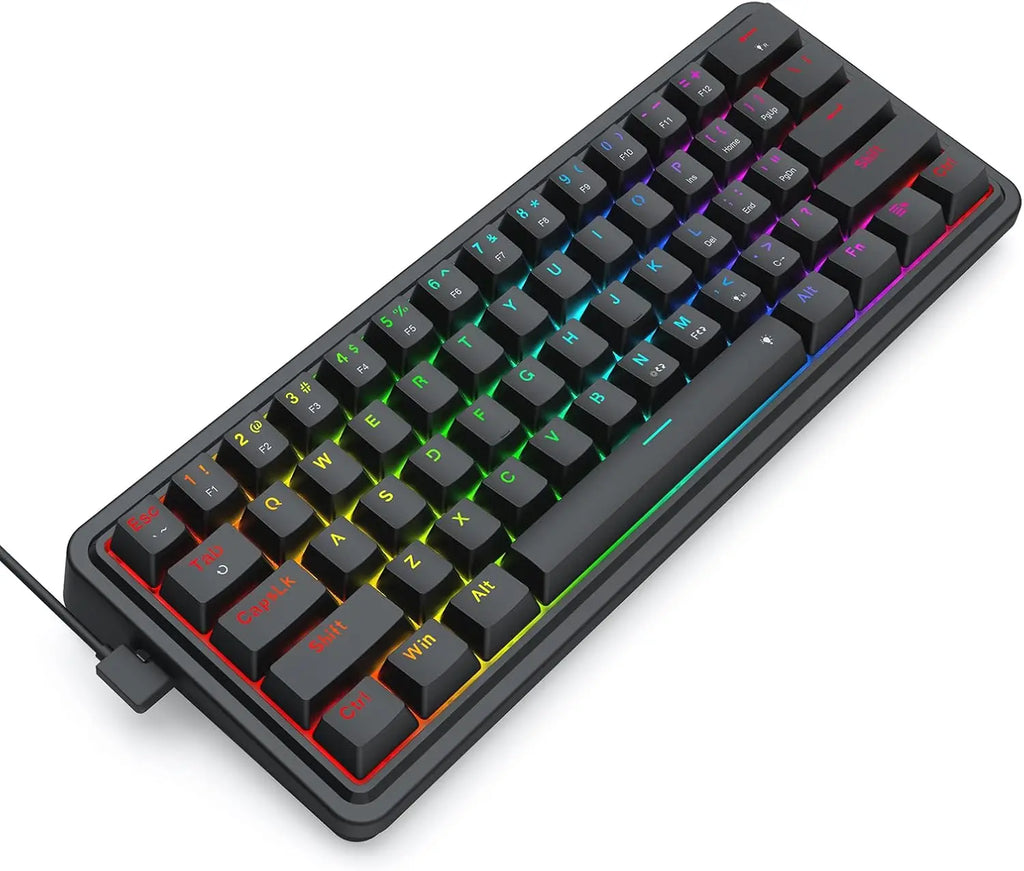 - 61-Key Ultra-Compact Layout – 60% wired layout keeps your desktop neat while freeing up space for large mouse movements, perfect for gaming setups.