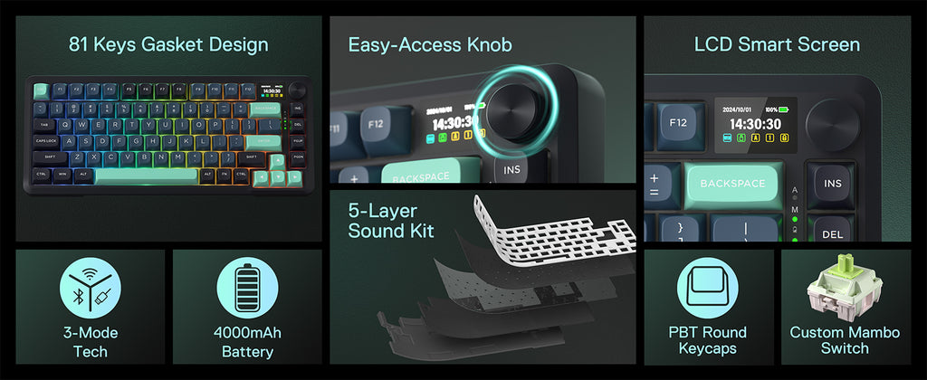 - Compact 81-Key Layout – Retains the 65% layout length while adding a top function keys zone for convenience. The layout increases mouse space and removes the need for FN combo keys.