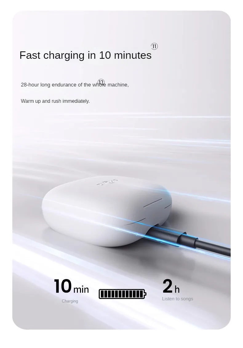 Keep your playlists going with up to 6 hours of continuous listening on a single charge and 28 hours with the charging case. Need a quick boost? A 10-minute quick charge provides 2 hours of extra playtime.