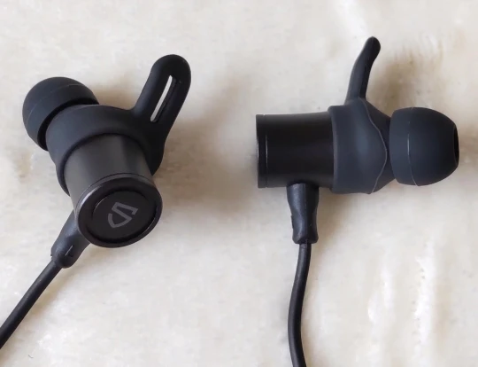 Flexible, skin-friendly silicone neckband with adjustable cable and 3 sizes of ear tips and ear wings for a custom fit. - Magnetic Earbuds for Tangle-Free Storage