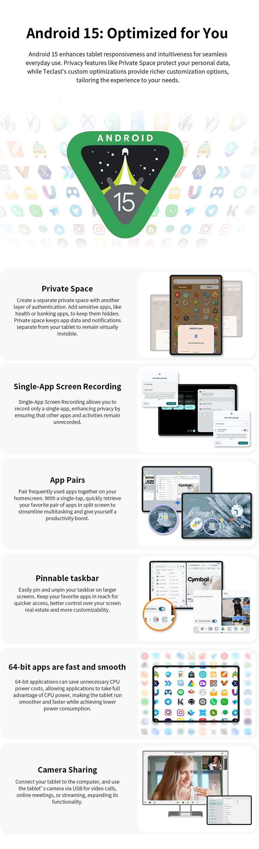 Compact, powerful, and beautifully designed — the TECLAST M50 Mini is the perfect everyday tablet for entertainment, work, and study. With its vibrant 8.7-inch 90Hz display, smooth Android 15 experience, and ultra-portable metal body, this tablet delivers incredible performance and style in one sleek device.