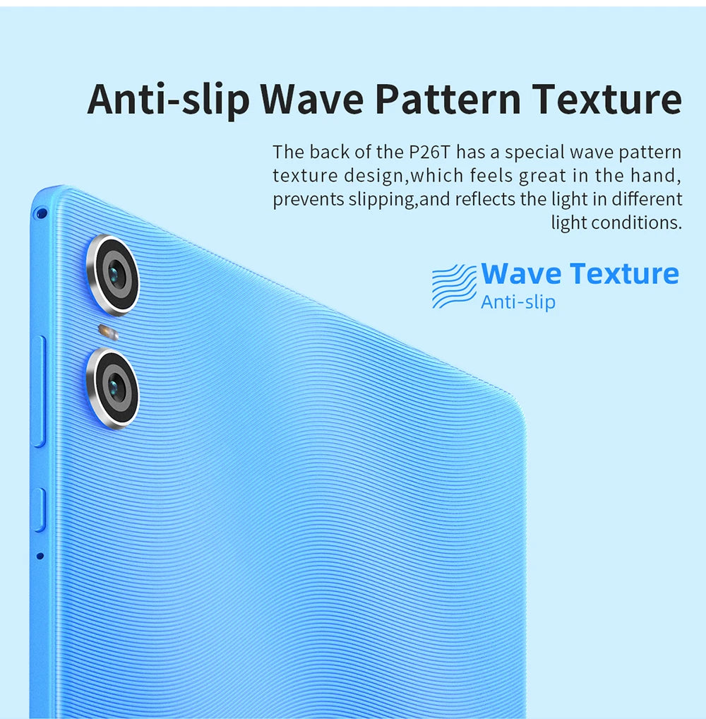 - Blue Wave Texture Design – The tablet’s sparkling blue exterior with non-slip wave texture not only looks stylish but also provides a secure grip for comfortable handling during extended use.
