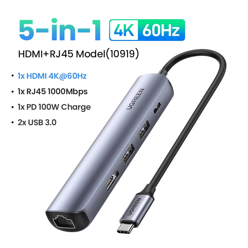 - 5-in-1 Functionality: Includes HDMI, USB-A, and other ports for versatile connections.