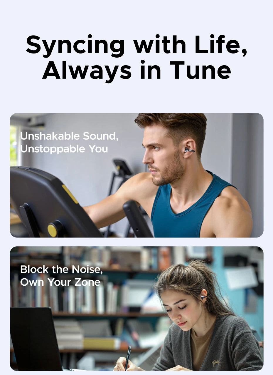 Equipped with 12mm PU + bio-diaphragm dynamic drivers, the ClipBuds deliver full-bodied sound with deep bass, detailed mids, and crisp treble. The addition of Spatial Audio provides a more cinematic and three-dimensional listening experience, enhancing everything from music and podcasts to audiobooks and films. Adaptive bass algorithms ensure balanced sound that adjusts to your environment and content.