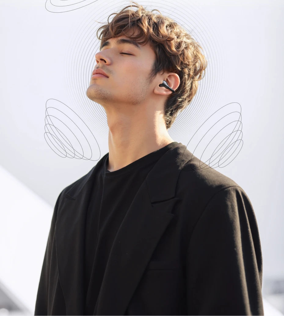 The ClipBuds weigh just 5.2g per ear, providing a feather-light wearing experience suitable for long hours of use. Made from high-quality titanium and soft silica gel, the ear clips are strong, flexible and non-deformable. The open-ear clip-on design allows sound to enter naturally while keeping your ear canal unobstructed, making them ideal for commuting, jogging or cycling where situational awareness is essential.