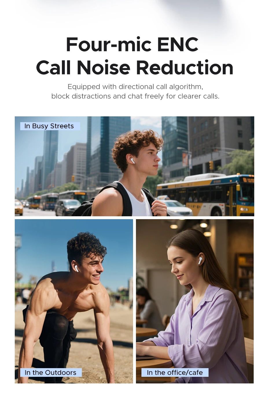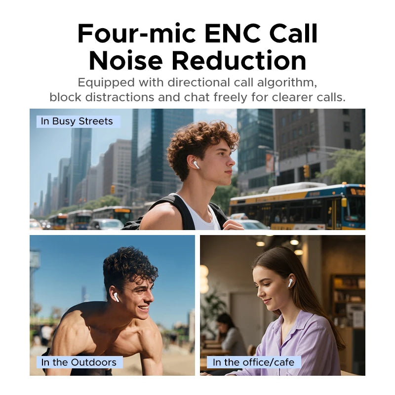 Even without ANC for audio playback, the LightBuds excel in call clarity thanks to ENC (Environmental Noise Cancellation) with a four-mic system. This setup reduces background noise and enhances your voice, allowing callers to hear you clearly—perfect for busy environments, commuting, and hands-free work calls.