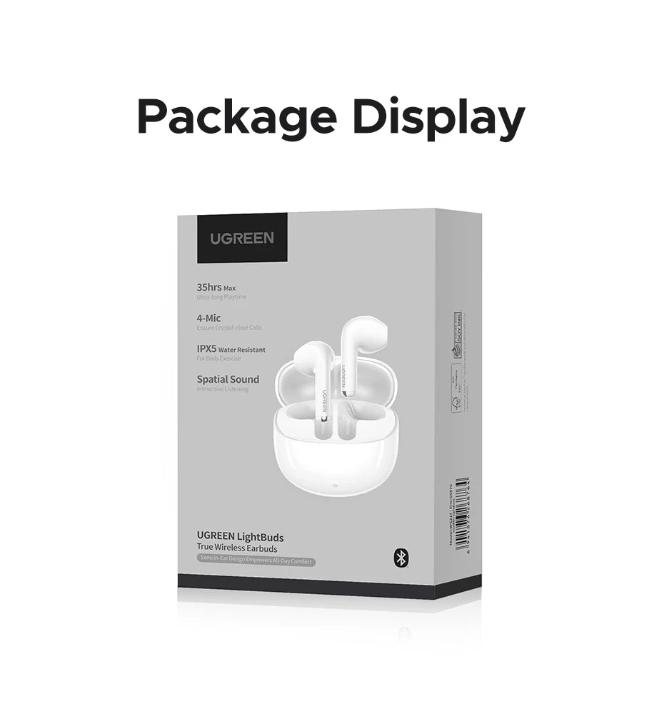 Discover lightweight comfort, premium audio, and smart app-powered control with the UGREEN LightBuds True Wireless Earphones. Designed for everyday listeners who want crystal-clear sound, low-latency performance and outstanding battery life, the LightBuds offer an impressive balance of modern technology and all-day usability. With 13mm dynamic drivers, Spatial Audio, and four-microphone noise reduction technology, they deliver an upgraded listening and calling experience in any environment. Whether you're commuting, working, gaming or relaxing, the LightBuds are built to perform.