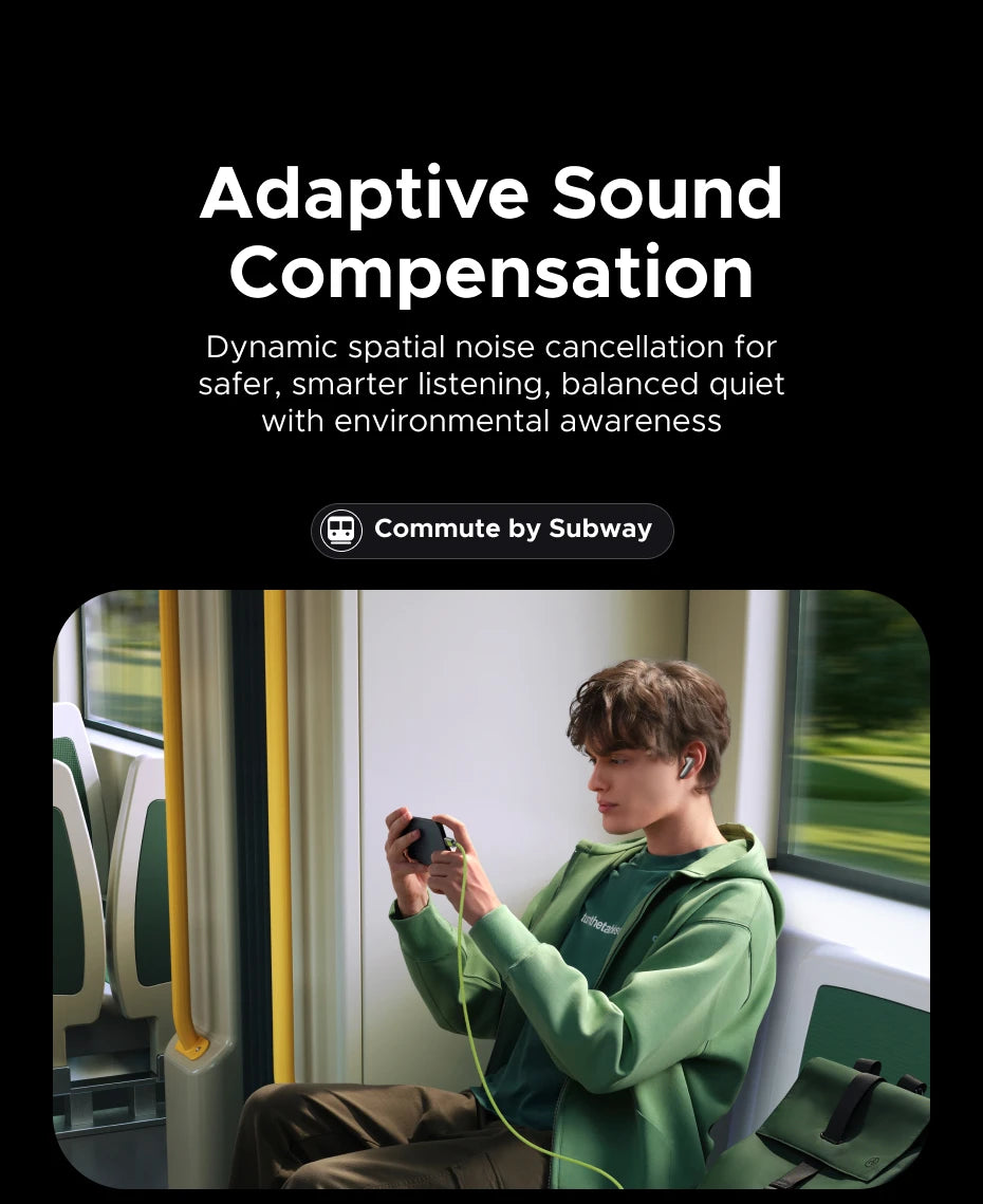 Smart ANC automatically adjusts noise-cancelling strength based on your environment, helping you enjoy music or calls while staying aware when necessary. This feature can reduce background noise significantly, making it perfect for commuting, offices, or noisy outdoor settings.