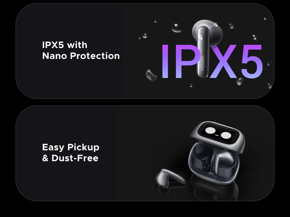 Control EQ settings, remap touch controls, switch ANC modes, and monitor battery levels via the dedicated UGREEN App. Personalise your audio experience to suit your preferences.