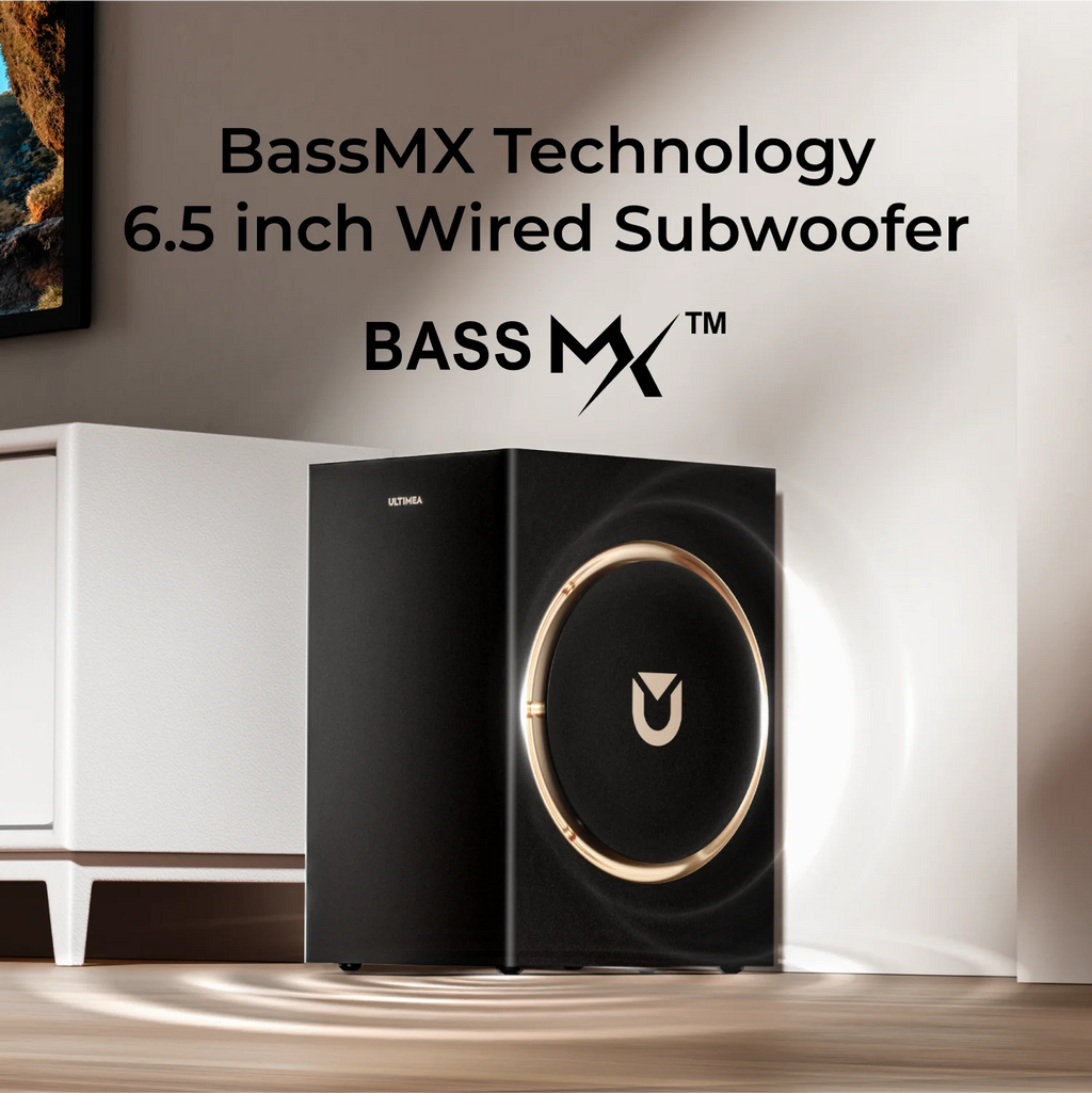- BassMX Technology – Enhanced 6.5-inch subwoofer with an expanded 7.2L wooden cabinet delivers deep, controlled bass down to 38Hz, giving movies and music extra punch.